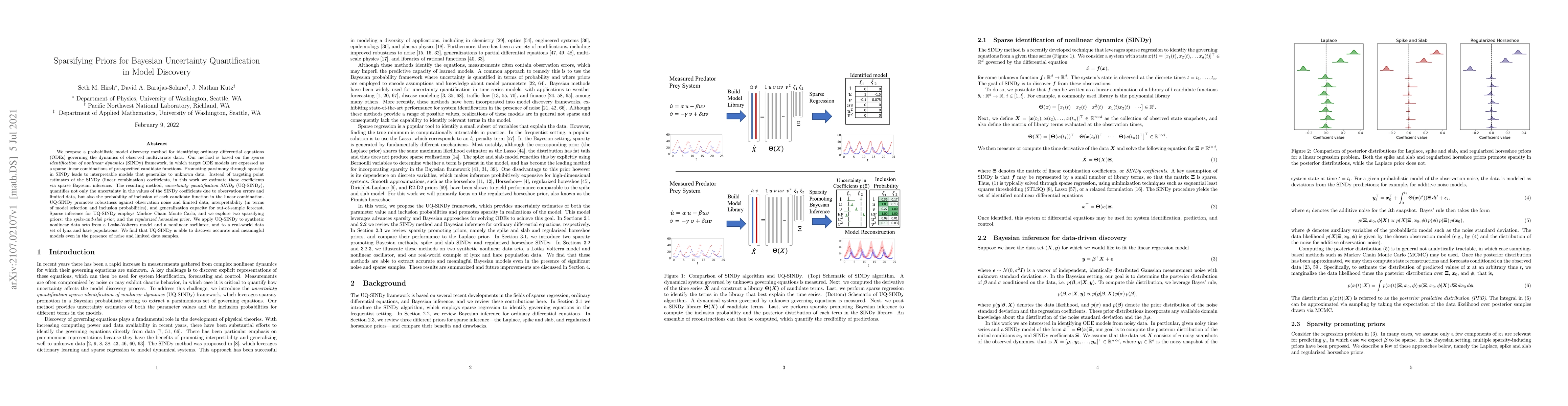 This paper proposes a sparse Bayesian inference method, UQ-SINDy, for discovering ordinary differential equations governing multivariate data dynamics. It uses two sparsifying priors to quantify uncertainty in model coefficients and candidate function inclusion probabilities, enhancing robustness, interpretability, and generalization.