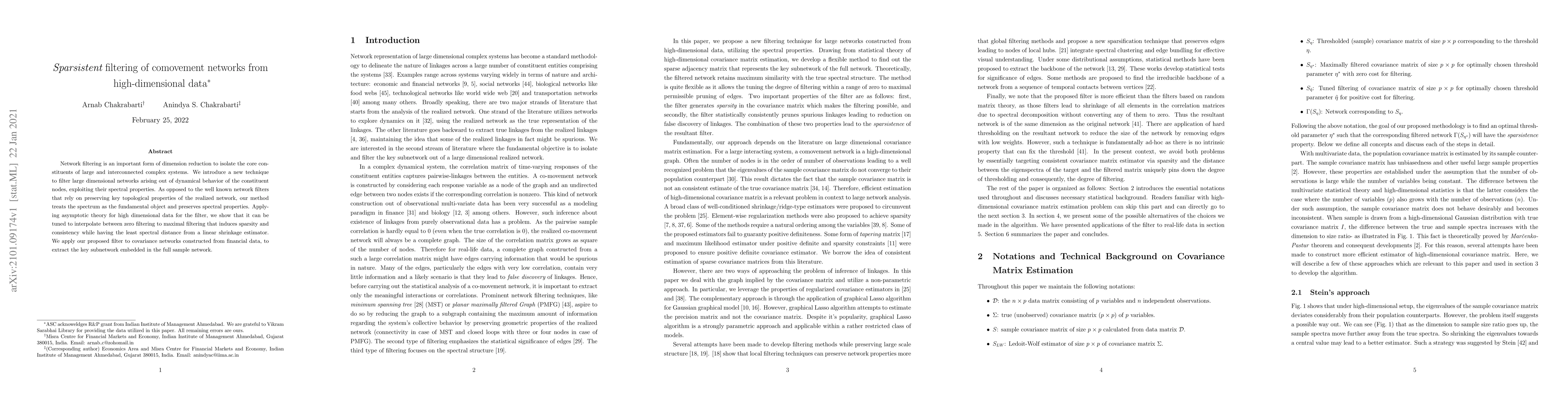 This paper introduces a novel sparsistent filtering technique for high-dimensional comovement networks, focusing on preserving spectral properties rather than topological ones. The method interpolates between zero filtering and maximal sparsity, demonstrating effectiveness in extracting key subnetworks from financial data.