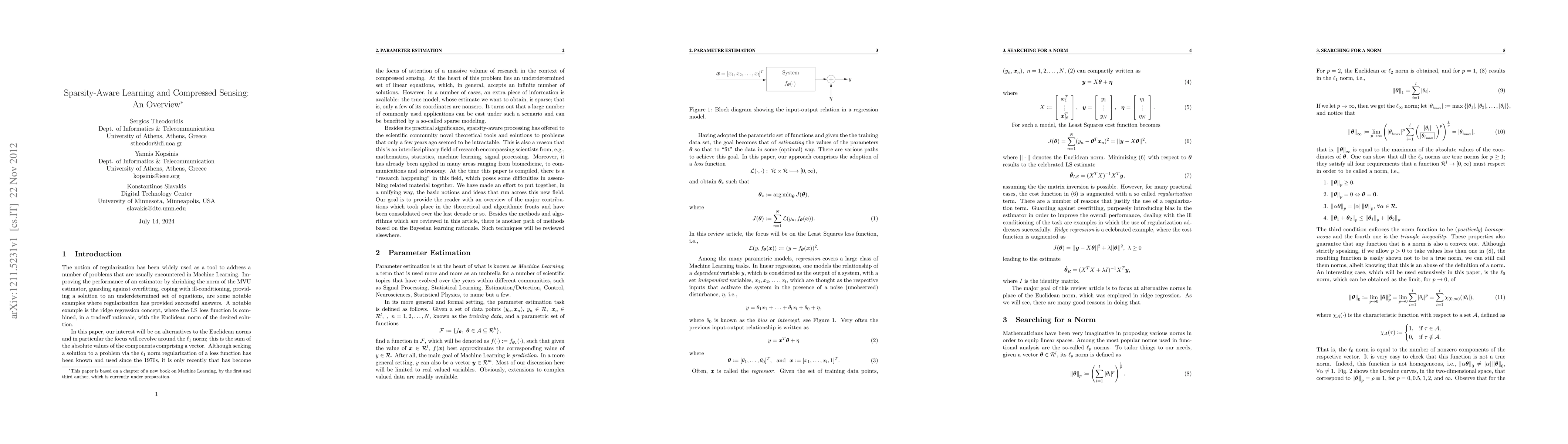 This paper is based on a chapter of a new book on Machine Learning, by the first and third author, which is currently under preparation. We provide an overview of the major theoretical advances as well as the main trends in algorithmic developments in the area of sparsity-aware learning and compressed sensing. Both batch processing and online processing techniques are considered. A case study in the context of time-frequency analysis of signals is also presented. Our intent is to update this review from time to time, since this is a very hot research area with a momentum and speed that is sometimes difficult to follow up.