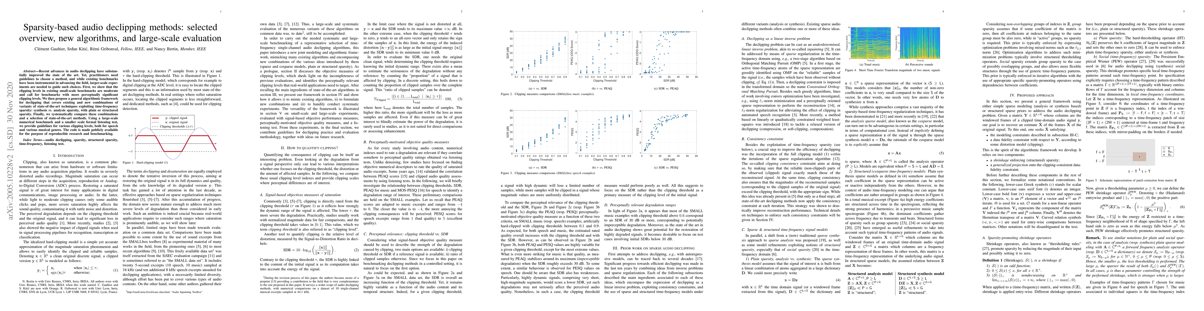 Researchers developed a general framework for audio declipping methods that covers various techniques exploiting time-frequency sparsity, providing guidelines for choosing the best method based on clipping levels and musical genres.
