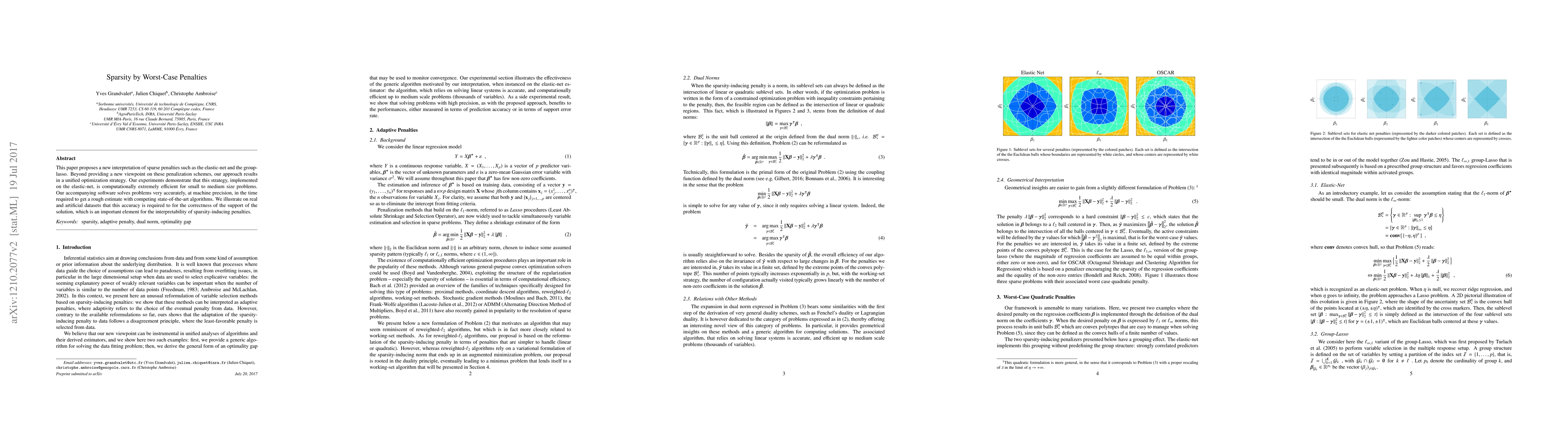 This paper proposes a new interpretation of sparse penalties such as the elastic-net and the group-lasso. Beyond providing a new viewpoint on these penalization schemes, our approach results in a unified optimization strategy. Our experiments demonstrate that this strategy, implemented on the elastic-net, is computationally extremely efficient for small to medium size problems. Our accompanying software solves problems very accurately, at machine precision, in the time required to get a rough estimate with competing state-of-the-art algorithms. We illustrate on real and artificial datasets that this accuracy is required to for the correctness of the support of the solution, which is an important element for the interpretability of sparsity-inducing penalties.
