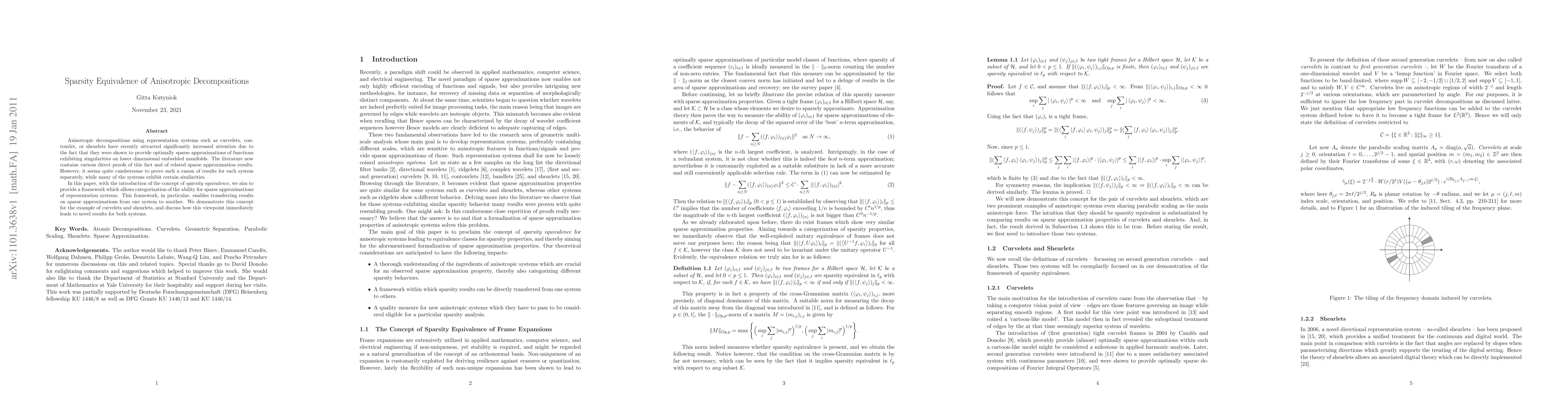 Anisotropic decompositions using representation systems such as curvelets, contourlet, or shearlets have recently attracted significantly increased attention due to the fact that they were shown to provide optimally sparse approximations of functions exhibiting singularities on lower dimensional embedded manifolds. The literature now contains various direct proofs of this fact and of related sparse approximation results. However, it seems quite cumbersome to prove such a canon of results for each system separately, while many of the systems exhibit certain similarities. In this paper, with the introduction of the concept of sparsity equivalence, we aim to provide a framework which allows categorization of the ability for sparse approximations of representation systems. This framework, in particular, enables transferring results on sparse approximations from one system to another. We demonstrate this concept for the example of curvelets and shearlets, and discuss how this viewpoint immediately leads to novel results for both systems.