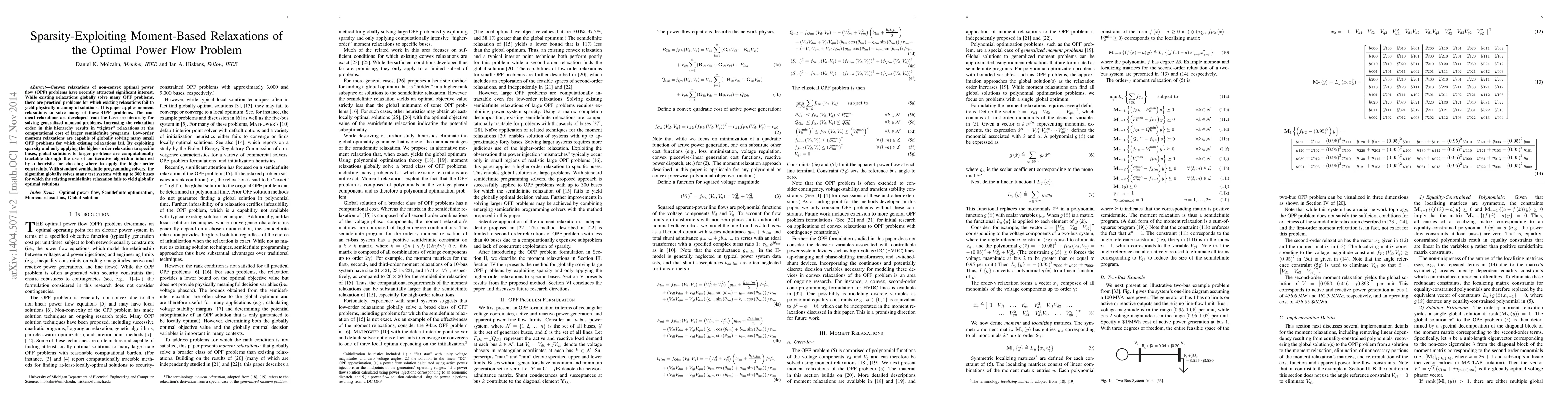 The paper presents a hierarchy of moment relaxations for OPF problems, exploiting sparsity and using an iterative algorithm to globally solve problems that existing relaxations cannot handle.