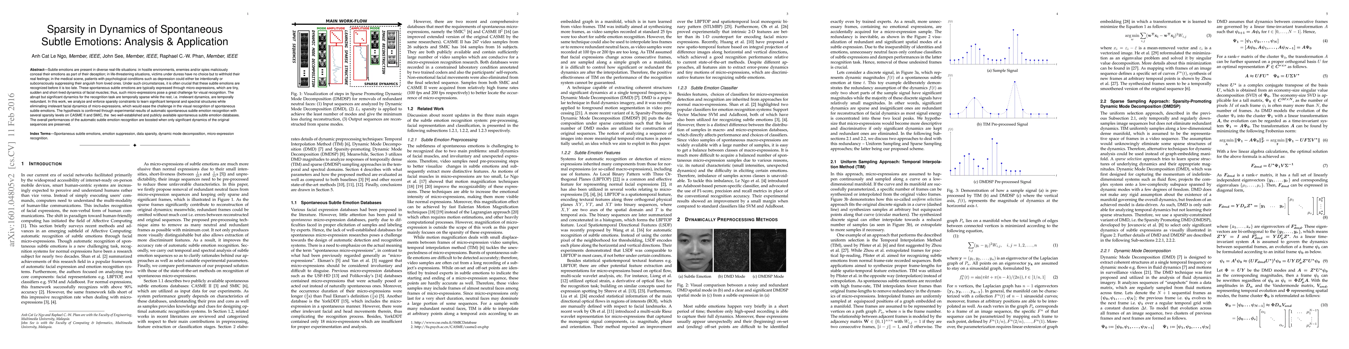 This paper explores the dynamics of spontaneous subtle emotions through micro-expressions, focusing on enforcing sparsity to identify and retain significant temporal and spectral structures. Experimental results show that preserving only significant dynamics enhances the recognition of subtle emotions, as demonstrated on CASME II and SMIC datasets.