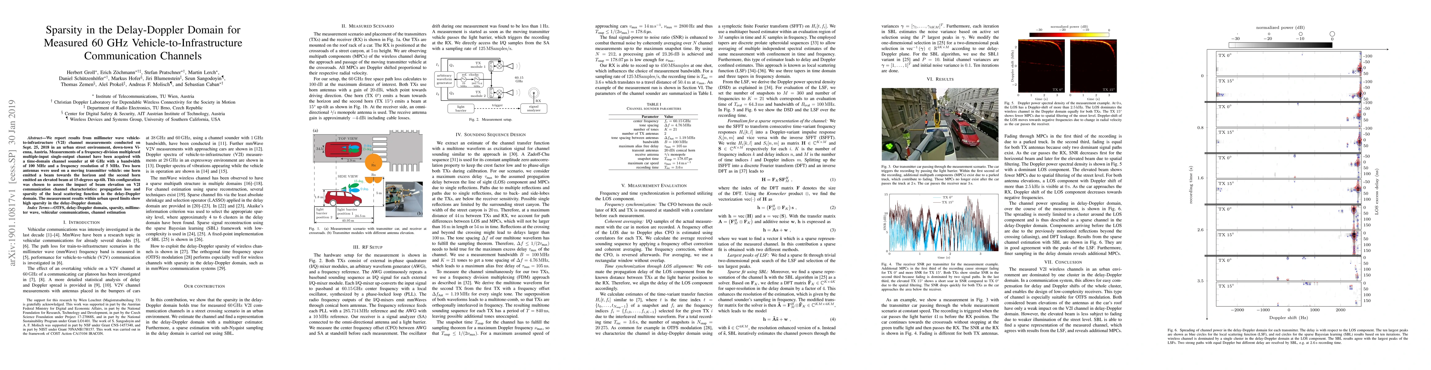 We report results from millimeter wave vehicle-to-infrastructure (V2I) channel measurements conducted on Sept. 25, 2018 in an urban street environment, down-town Vienna, Austria. Measurements of a frequency-division multiplexed multiple-input single-output channel have been acquired with a time-domain channel sounder at 60 GHz with a bandwidth of 100 MHz and a frequency resolution of 5 MHz. Two horn antennas were used on a moving transmitter vehicle: one horn emitted a beam towards the horizon and the second horn emitted an elevated beam at 15-degrees up-tilt. This configuration was chosen to assess the impact of beam elevation on V2I communication channel characteristics: propagation loss and sparsity of the local scattering function in the delay-Doppler domain. The measurement results within urban speed limits show high sparsity in the delay-Doppler domain.