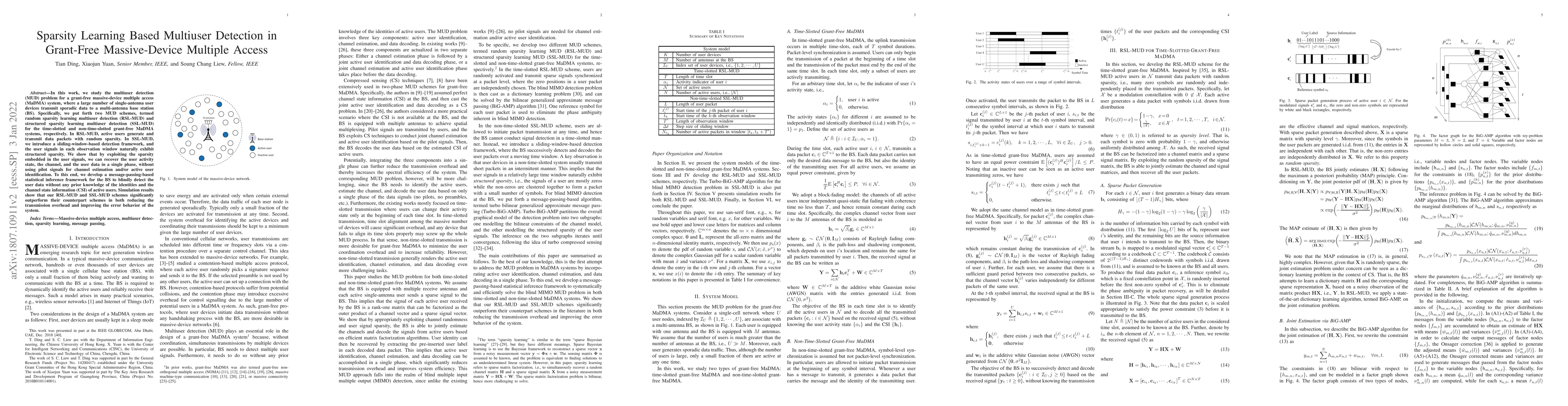 Researchers developed two multiuser detection schemes for grant-free massive-device multiple access systems, achieving significant reductions in transmission overhead and error behavior through sparsity learning and structured sparsity.