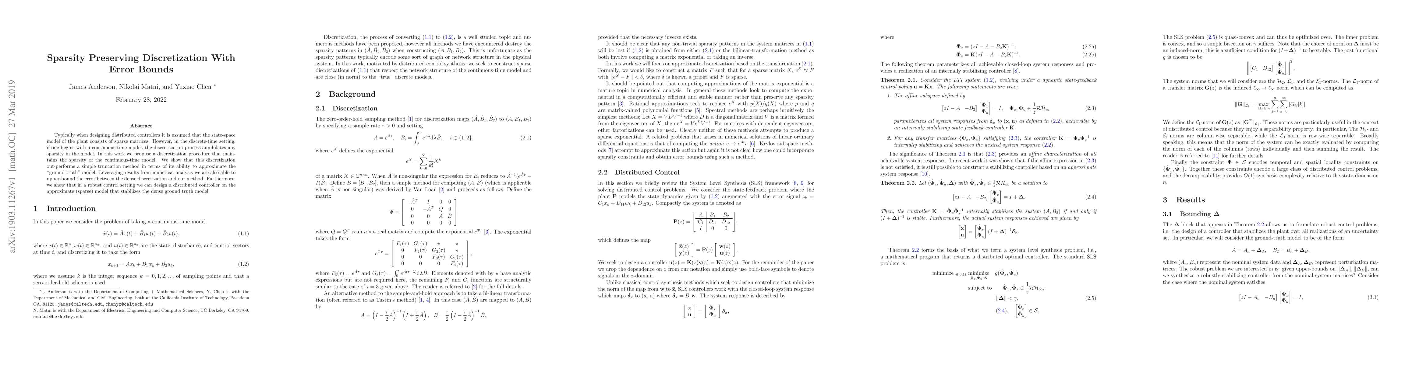 Researchers developed a discretization method that preserves sparsity in state-space models for distributed controllers, outperforming traditional truncation methods and enabling robust control designs.