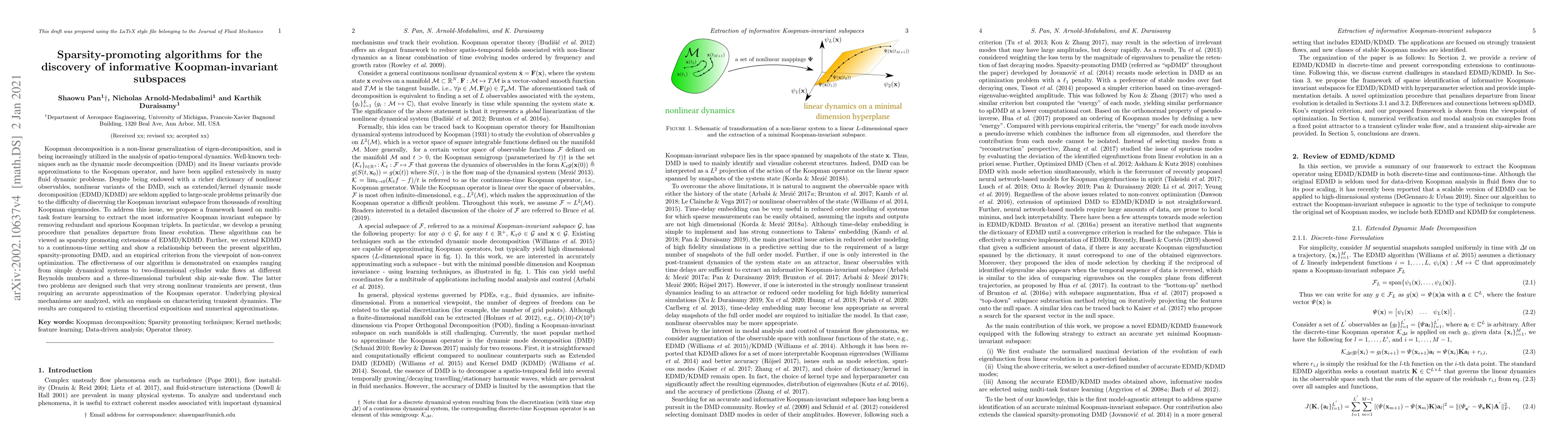 This paper proposes sparsity-promoting algorithms to identify informative Koopman invariant subspaces, addressing the challenge of discerning relevant subspaces from numerous eigenmodes in large-scale nonlinear systems. The developed framework employs multi-task feature learning and pruning to enhance extended/kernel dynamic mode decomposition (EDMD/KDMD) and is validated on various fluid dynamic problems, highlighting its effectiveness in capturing transient dynamics.