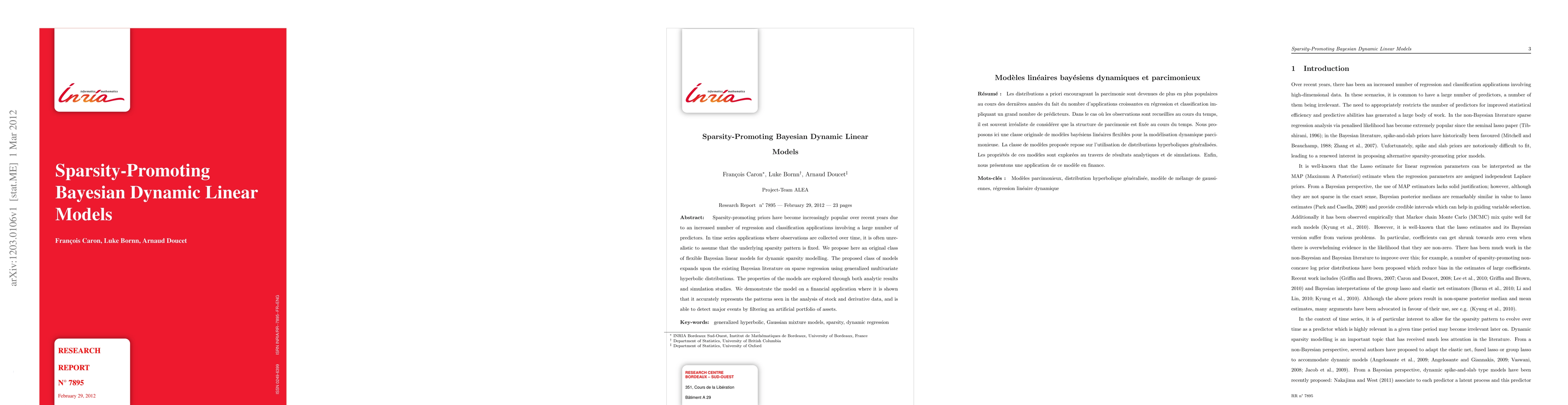 This paper proposes a new class of Bayesian dynamic linear models that incorporate sparsity-promoting priors for time series data, allowing for changing sparsity patterns over time. The models utilize generalized multivariate hyperbolic distributions and are validated through simulations and a financial application demonstrating their effectiveness in detecting major events in stock and derivative data.