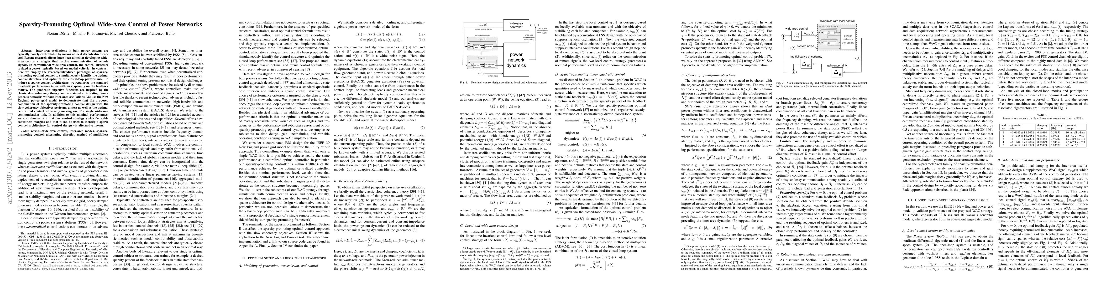 Inter-area oscillations in bulk power systems are typically poorly controllable by means of local decentralized control. Recent research efforts have been aimed at developing wide- area control strategies that involve communication of remote signals. In conventional wide-area control, the control structure is fixed a priori typically based on modal criteria. In contrast, here we employ the recently-introduced paradigm of sparsity- promoting optimal control to simultaneously identify the optimal control structure and optimize the closed-loop performance. To induce a sparse control architecture, we regularize the standard quadratic performance index with an l1-penalty on the feedback matrix. The quadratic objective functions are inspired by the classic slow coherency theory and are aimed at imitating homogeneous networks without inter-area oscillations. We use the New England power grid model to demonstrate that the proposed combination of the sparsity-promoting control design with the slow coherency objectives performs almost as well as the optimal centralized control while only making use of a single wide-area communication link. In addition to this nominal performance, we also demonstrate that our control strategy yields favorable robustness margins and that it can be used to identify a sparse control architecture for control design via alternative means.