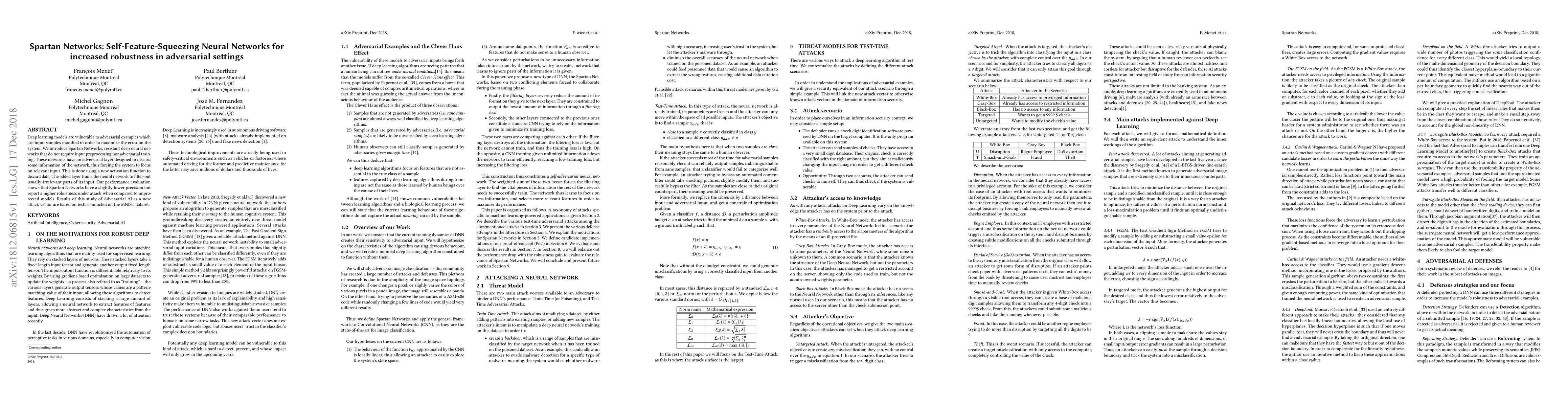 Deep learning models are vulnerable to adversarial examples which are input samples modified in order to maximize the error on the system. We introduce Spartan Networks, resistant deep neural networks that do not require input preprocessing nor adversarial training. These networks have an adversarial layer designed to discard some information of the network, thus forcing the system to focus on relevant input. This is done using a new activation function to discard data. The added layer trains the neural network to filter-out usually-irrelevant parts of its input. Our performance evaluation shows that Spartan Networks have a slightly lower precision but report a higher robustness under attack when compared to unprotected models. Results of this study of Adversarial AI as a new attack vector are based on tests conducted on the MNIST dataset.
