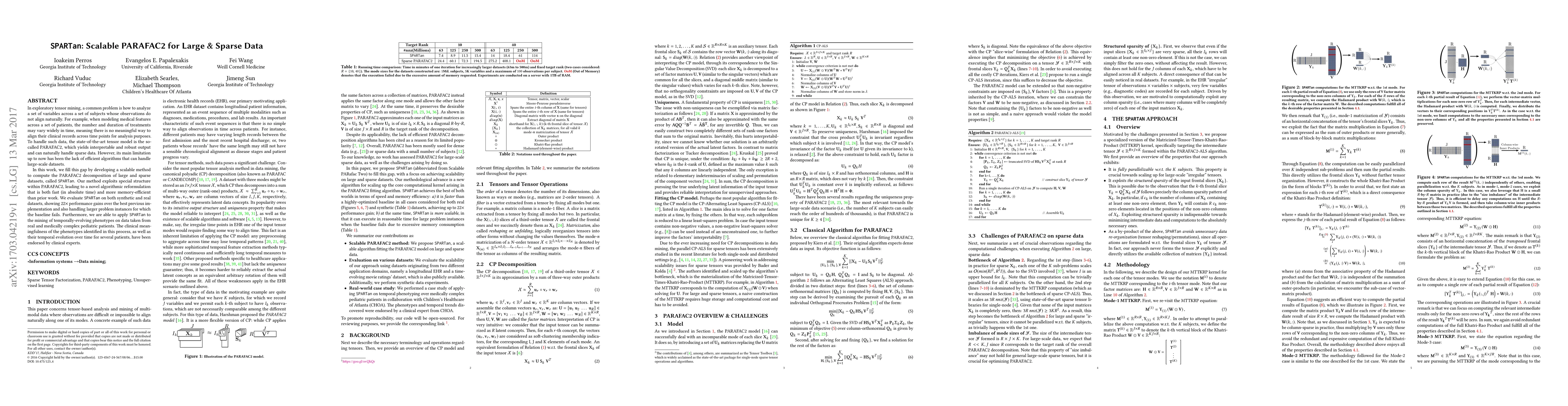 SPARTan introduces a scalable algorithm for computing PARAFAC2 decompositions on large and sparse datasets, achieving significant performance improvements over previous methods. The method successfully applies to temporally-evolving phenotype mining in pediatric patient data, demonstrating clinical relevance.