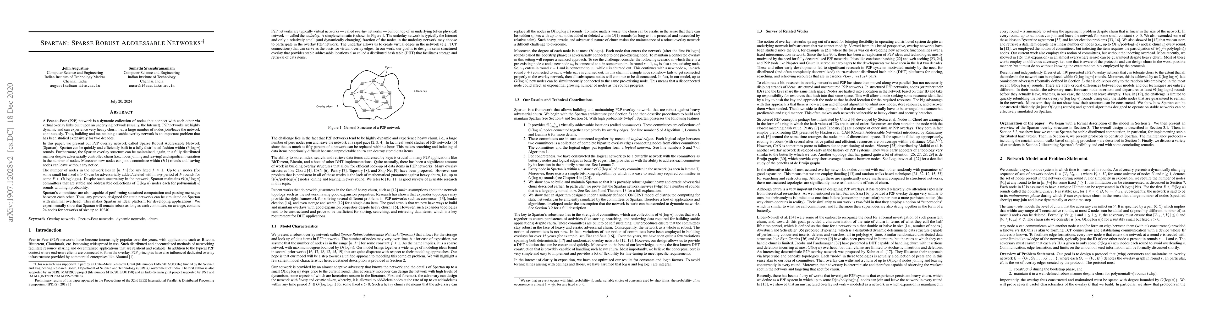 This paper introduces Spartan, a sparse and robust Peer-to-Peer overlay network that can be built and maintained in a fully distributed manner despite high churn and adversarial changes. Spartan maintains stable addressable committees for sustained computation and message passing, enabling minimal overhead simulation of static network protocols.