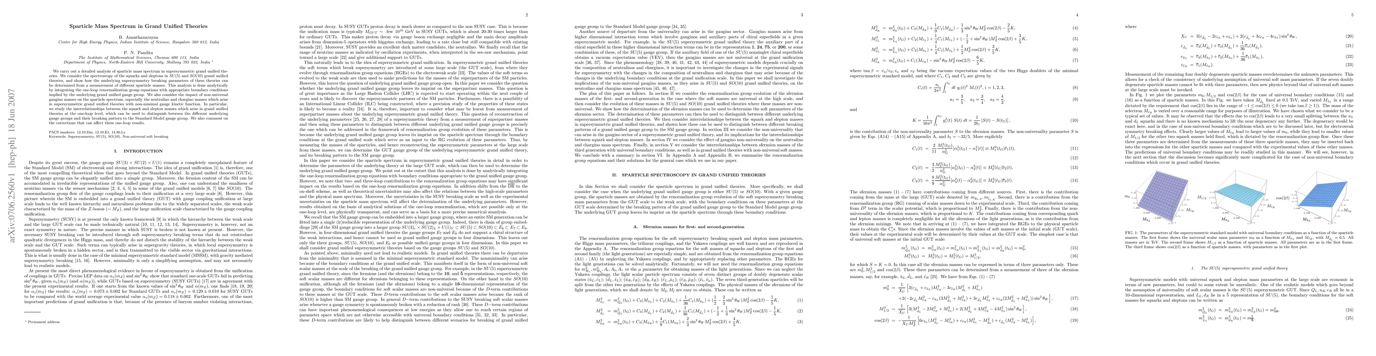 This research provides a detailed analytical analysis of sparticle mass spectra in supersymmetric grand unified theories (SUSY GUTs), focusing on the spectroscopy of squarks and sleptons within SU(5) and SO(10) frameworks. It determines underlying supersymmetry breaking parameters from sparticle mass measurements and explores the impact of non-universal gaugino masses, especially on neutralino and chargino masses.