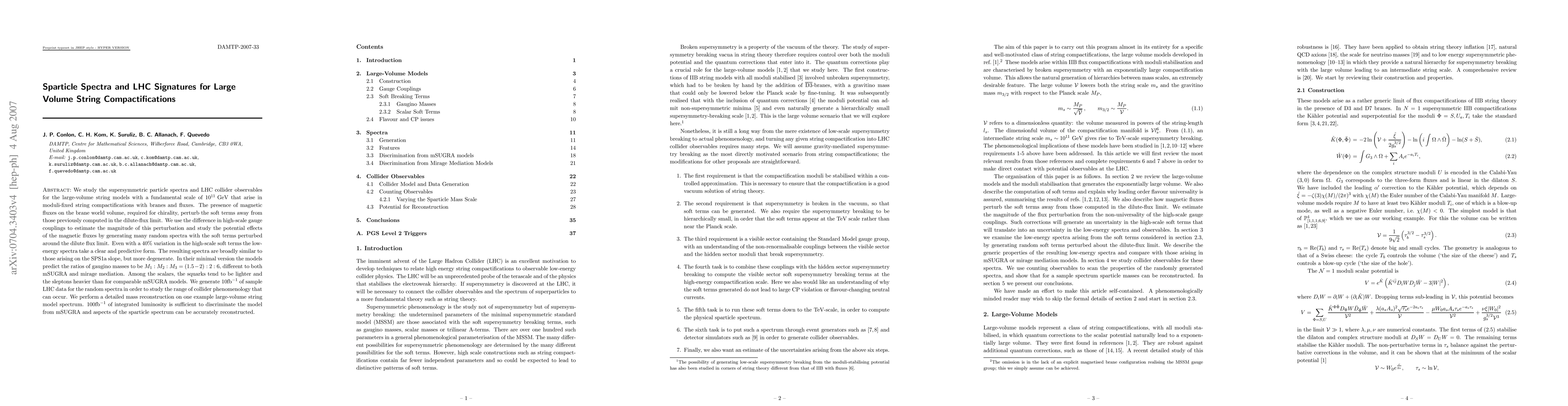 Large-volume string compactifications predict unique sparticle spectra with lighter squarks and heavier sleptons, distinguishable from mSUGRA models after 100 fb^{-1} of integrated luminosity.
