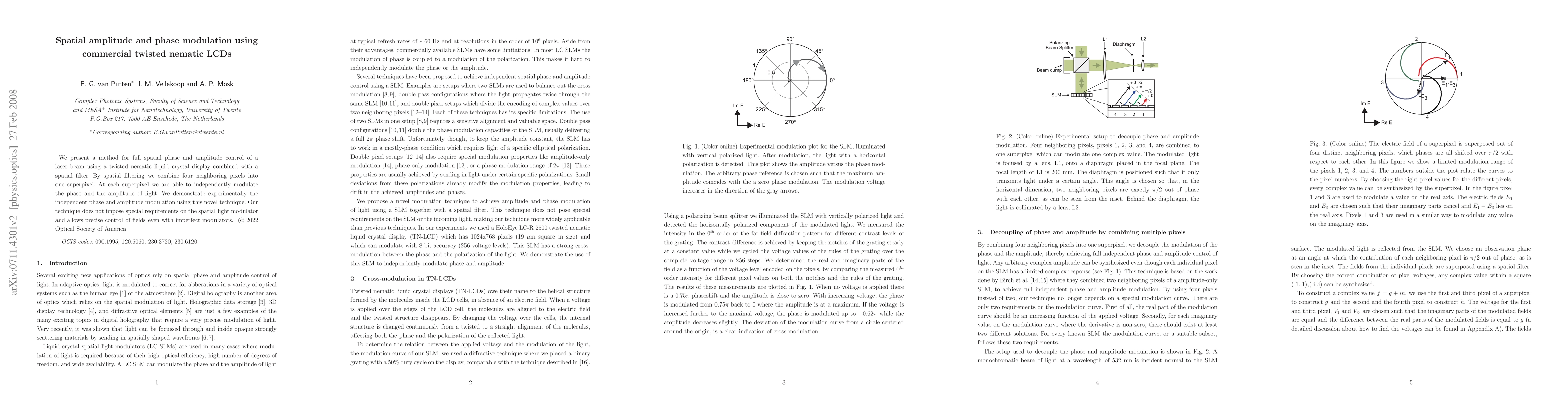 This paper introduces a method for precise spatial phase and amplitude modulation of laser beams using commercial twisted nematic LCDs combined with spatial filtering, enabling independent control at each superpixel formed by combining four pixels. The technique demonstrates effective modulation even with imperfect modulators.