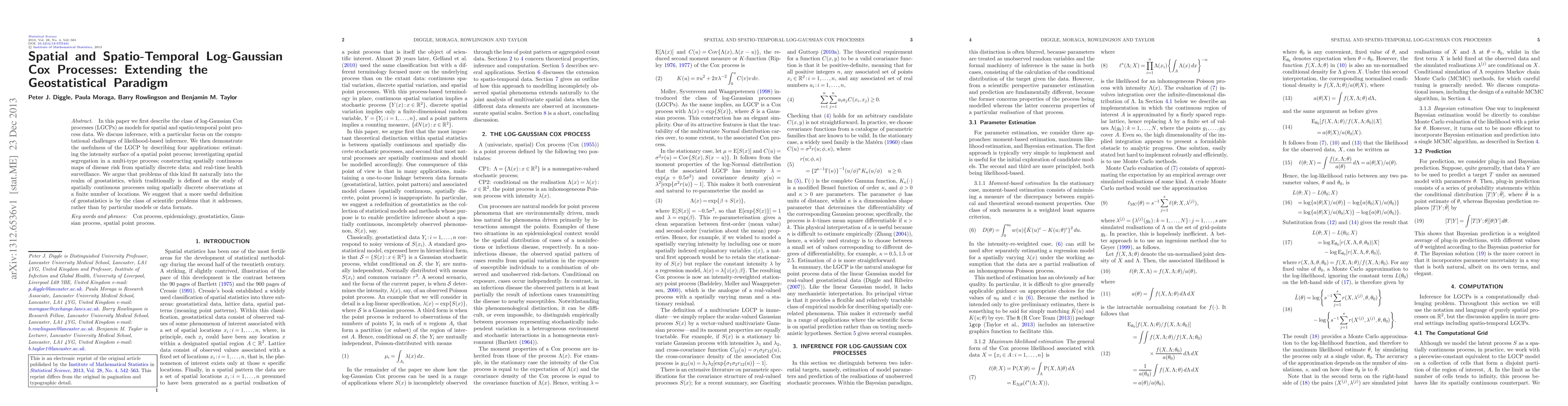 This paper introduces log-Gaussian Cox processes (LGCPs) as models for spatial and spatio-temporal data, addressing computational challenges in likelihood-based inference. It showcases LGCP applications in estimating intensity surfaces, spatial segregation, disease risk mapping, and real-time health surveillance, advocating for a broader definition of geostatistics based on problem types rather than specific models.