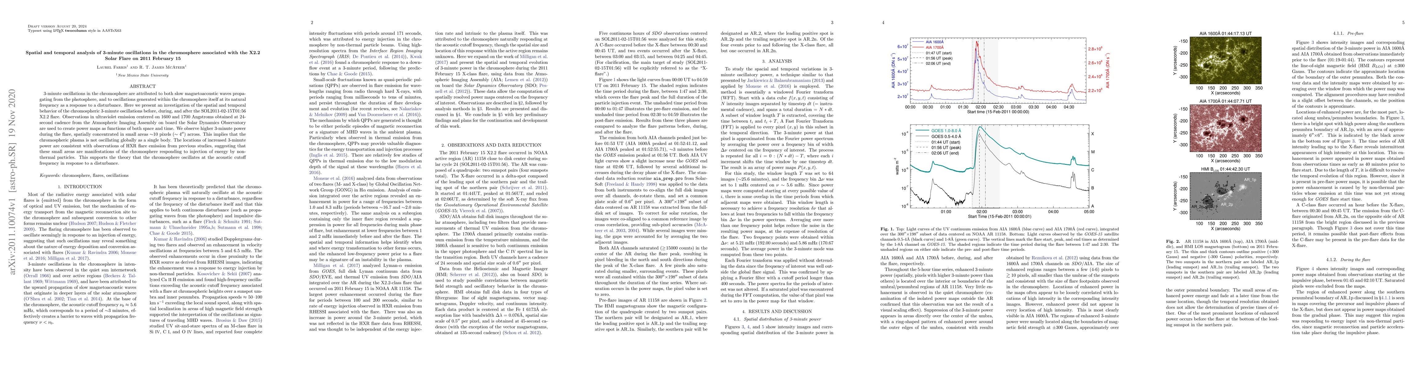 3-minute oscillations in the chromosphere are attributed to both slow magnetoacoustic waves propagating from the photosphere, and to oscillations generated within the chromosphere itself at its natural frequency as a response to a disturbance. Here we present an investigation of the spatial and temporal behavior of the chromospheric 3-minute oscillations before, during, and after the SOL2011-02-15T01:56 X2.2 flare. Observations in ultraviolet emission centered on 1600 and 1700 Angstroms obtained at 24- second cadence from the Atmospheric Imaging Assembly on board the Solar Dynamics Observatory are used to create power maps as functions of both space and time. We observe higher 3-minute power during the flare, spatially concentrated in small areas 10 pixels (4 arcseconds) across. This implies that the chromospheric plasma is not oscillating globally as a single body. The locations of increased 3-minute power are consistent with observations of HXR flare emission from previous studies, suggesting that these small areas are manifestations of the chromosphere responding to injection of energy by nonthermal particles. This supports the theory that the chromosphere oscillates at the acoustic cutoff frequency in response to a disturbance.