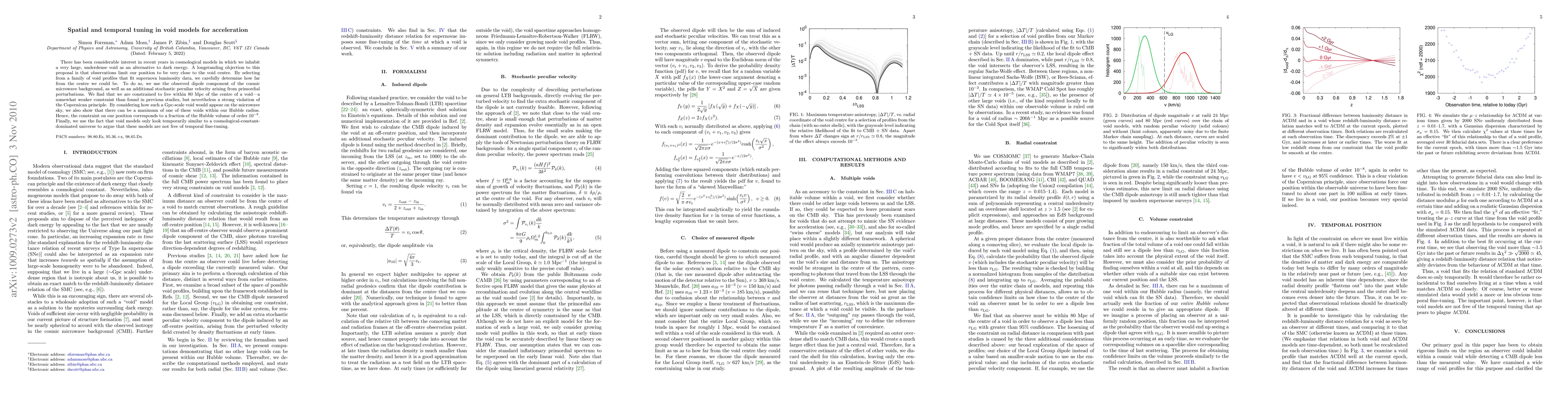 There has been considerable interest in recent years in cosmological models in which we inhabit a very large, underdense void as an alternative to dark energy. A longstanding objection to this proposal is that observations limit our position to be very close to the void centre. By selecting from a family of void profiles that fit supernova luminosity data, we carefully determine how far from the centre we could be. To do so, we use the observed dipole component of the cosmic microwave background, as well as an additional stochastic peculiar velocity arising from primordial perturbations. We find that we are constrained to live within 80 Mpc of the centre of a void--a somewhat weaker constraint than found in previous studies, but nevertheless a strong violation of the Copernican principle. By considering how such a Gpc-scale void would appear on the microwave sky, we also show that there can be a maximum of one of these voids within our Hubble radius. Hence, the constraint on our position corresponds to a fraction of the Hubble volume of order 10^{-8}. Finally, we use the fact that void models only look temporarily similar to a cosmological-constant-dominated universe to argue that these models are not free of temporal fine-tuning.