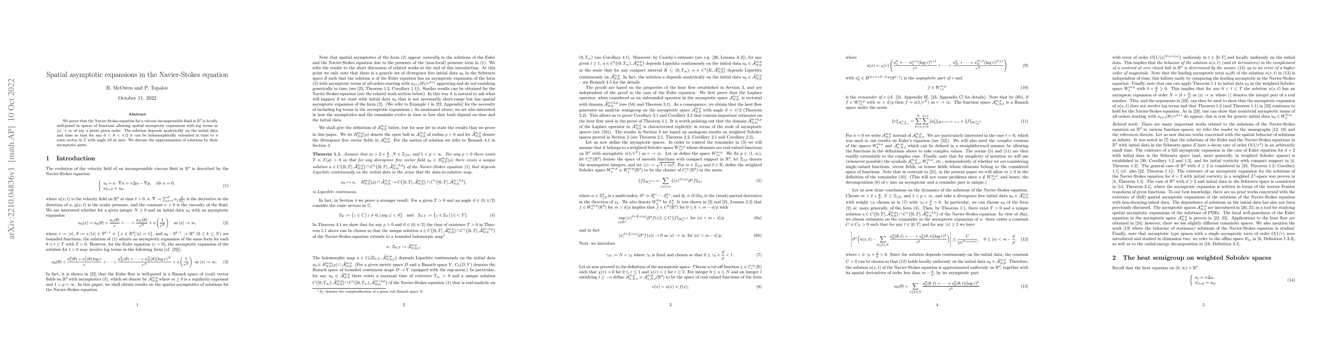 The paper presents a novel approach to proving local well-posedness for the Navier-Stokes equations in function spaces with spatial asymptotic expansions, including logarithmic terms, thereby extending classical results.