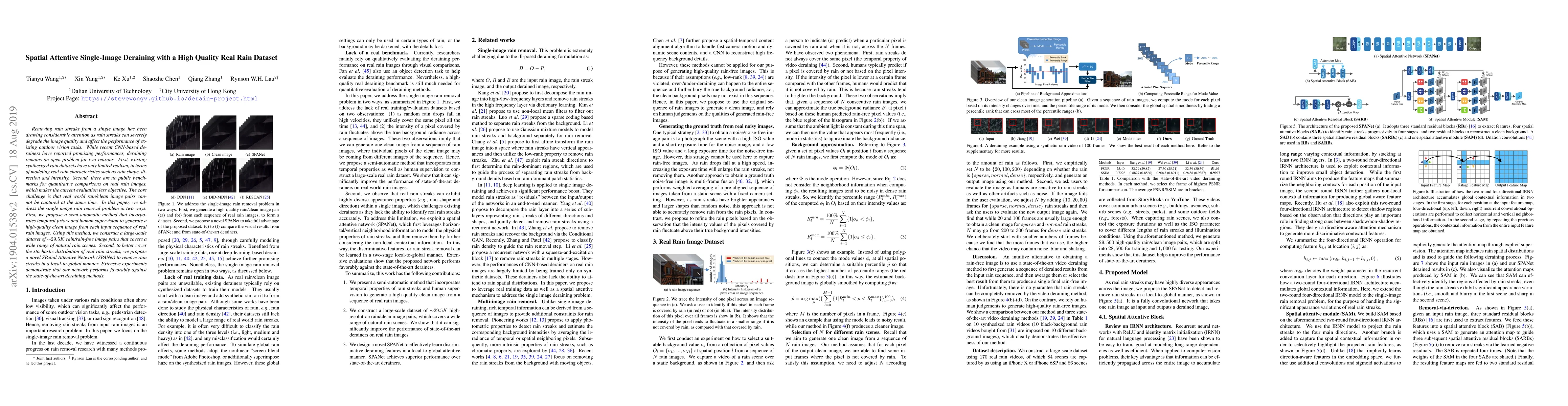 This paper introduces a semi-automatic method to generate a high-quality dataset of real rain/clean image pairs, addressing the lack of realistic rain datasets. It also proposes a Spatial Attentive Network (SPANet) for effective single-image deraining, outperforming existing methods in experiments.
