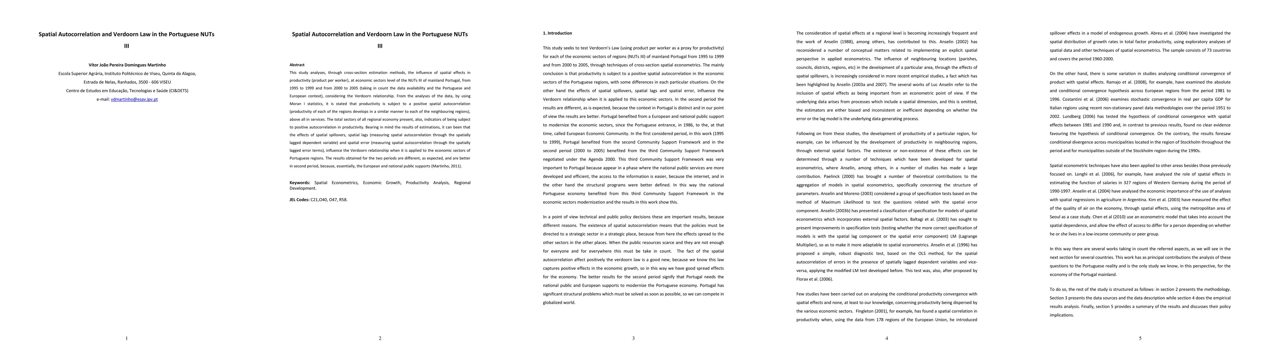This study examines spatial autocorrelation in productivity across Portuguese NUTs III regions from 1995-2005, finding positive spatial effects, particularly in services. The Verdoorn relationship is influenced by spatial spillovers, lags, and errors, with better results in the later period due to increased public support.