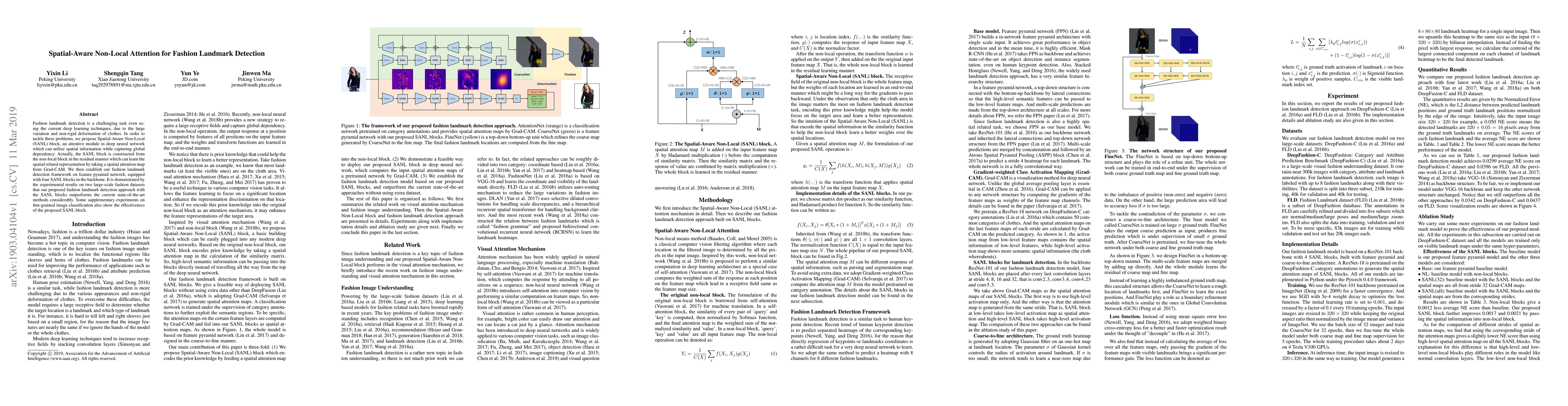 This paper proposes a Spatial-Aware Non-Local (SANL) block to enhance fashion landmark detection by leveraging spatial information and global dependencies. The SANL block, integrated into a feature pyramid network, significantly outperforms existing methods on large-scale fashion datasets.