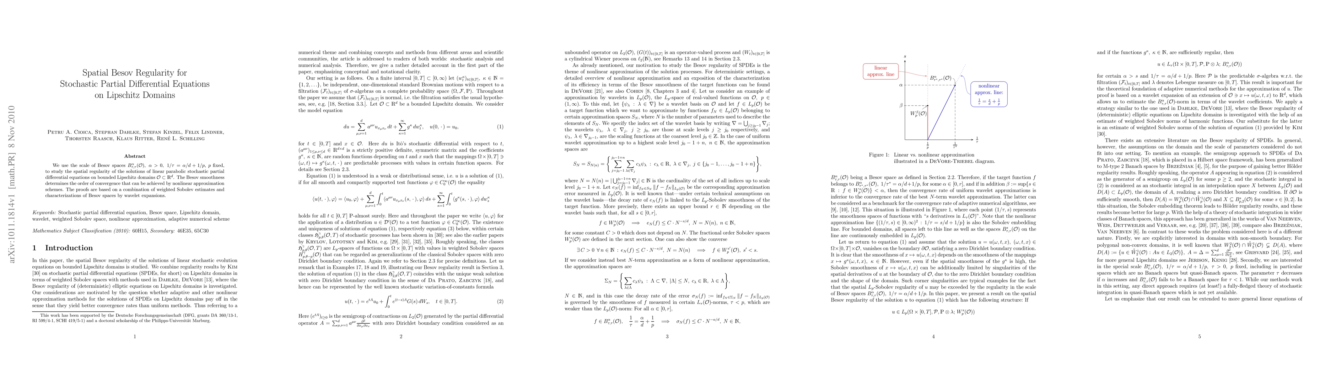 This paper investigates the spatial regularity of solutions to linear parabolic stochastic partial differential equations on Lipschitz domains using Besov spaces. The study leverages Besov smoothness to determine convergence rates for nonlinear approximation schemes, employing weighted Sobolev estimates and wavelet expansions for proofs.