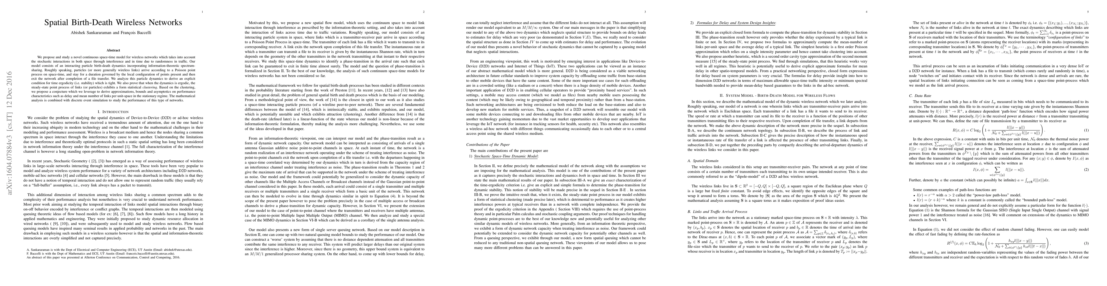 Researchers proposed a model for wireless networks that accounts for spatial interference and randomness in traffic, finding that steady-state link configurations cluster and providing insights into network performance characteristics.