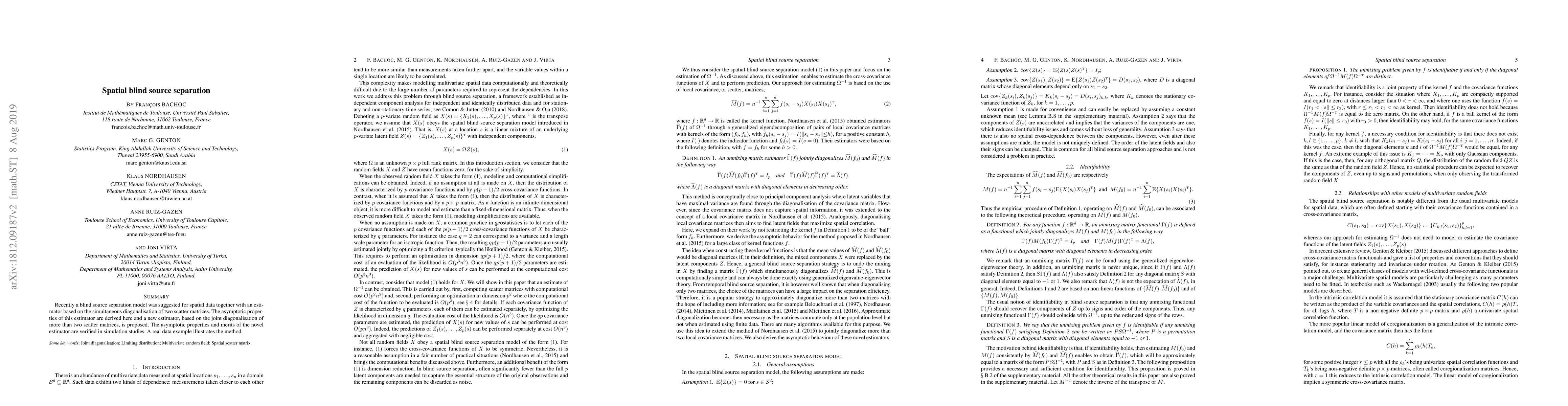 This paper proposes a novel blind source separation model for spatial data, introducing an estimator based on the joint diagonalisation of multiple scatter matrices. Simulation studies and a real data example demonstrate the improved performance of the new estimator compared to existing methods.
