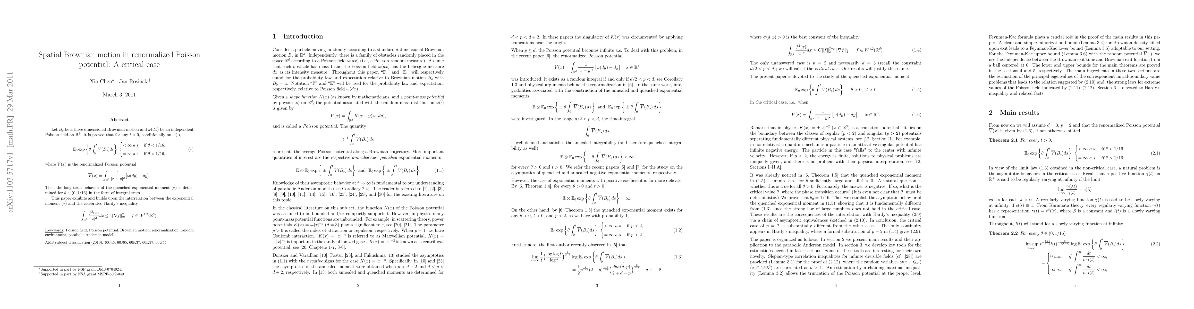 This paper investigates the behavior of a three-dimensional Brownian motion influenced by a renormalized Poisson potential. It proves that the quenched exponential moment is finite almost surely if the parameter θ is less than 1/16, and infinite if θ exceeds this threshold, establishing a critical case.