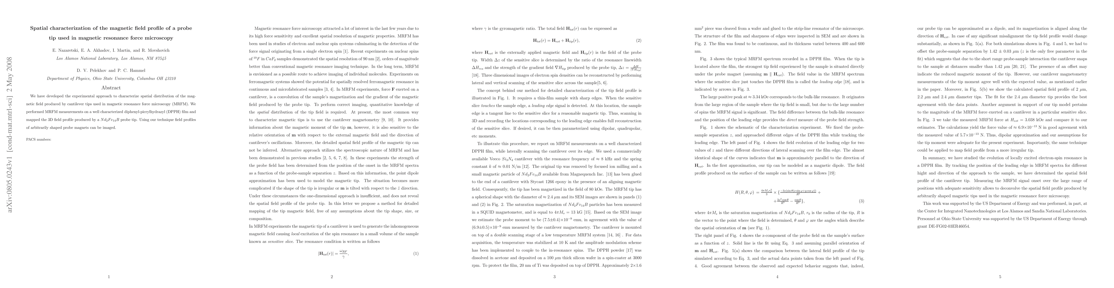 This paper presents an experimental method for mapping the 3D magnetic field profile of probe tips used in magnetic resonance force microscopy (MRFM) by measuring a DPPH film and imaging a Nd2Fe14B probe tip, enabling the characterization of arbitrarily shaped probe magnets.