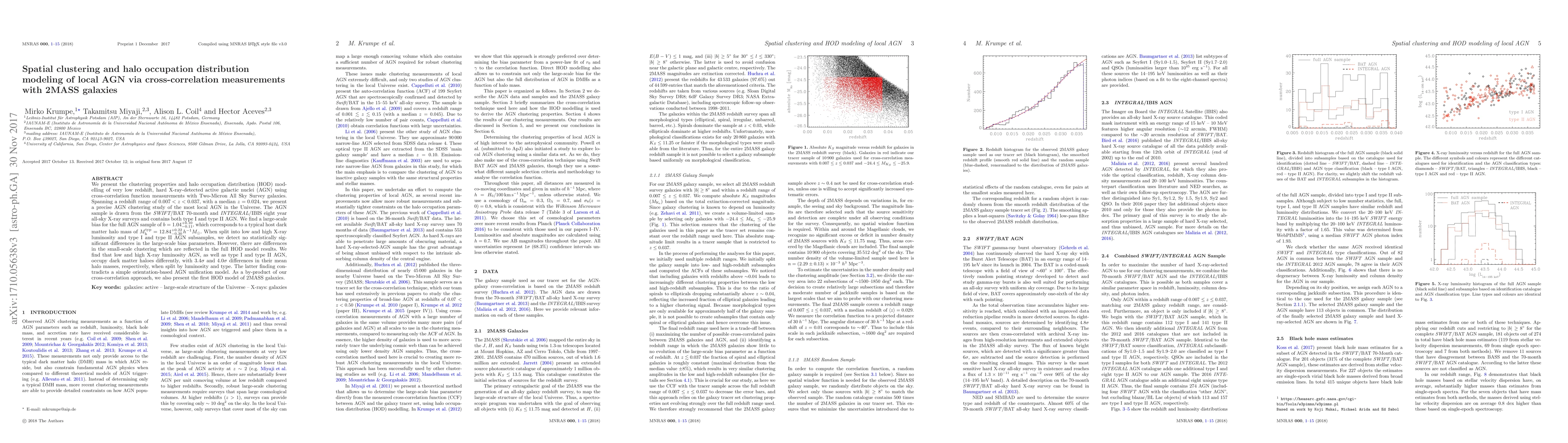 This paper investigates the clustering properties and halo occupation distribution of nearby active galactic nuclei (AGN) using cross-correlation with 2MASS galaxies. The study reveals a large-scale bias and different occupation patterns for low and high X-ray luminosity AGN, challenging a simple unification model.