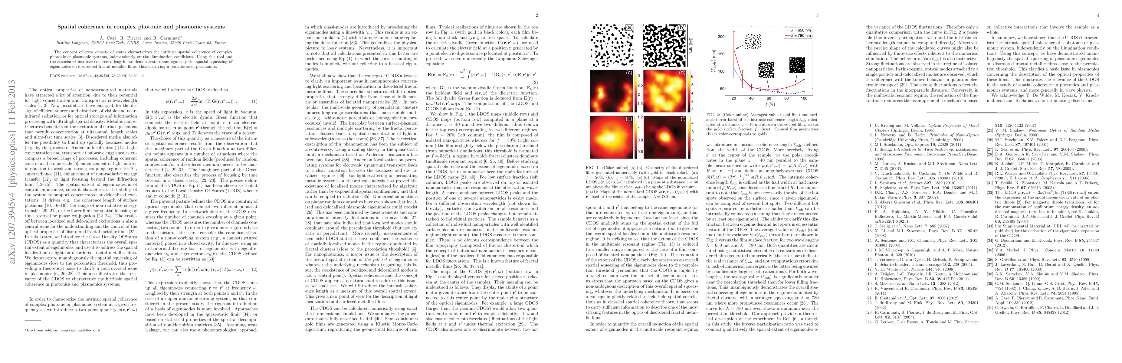 The concept of cross density of states characterizes the intrinsic spatial coherence of complex photonic or plasmonic systems, independently on the illumination conditions. Using this tool and the associated intrinsic coherence length, we demonstrate unambiguously the spatial squeezing of eigenmodes on disordered fractal metallic films, thus clarifying a basic issue in plasmonics.