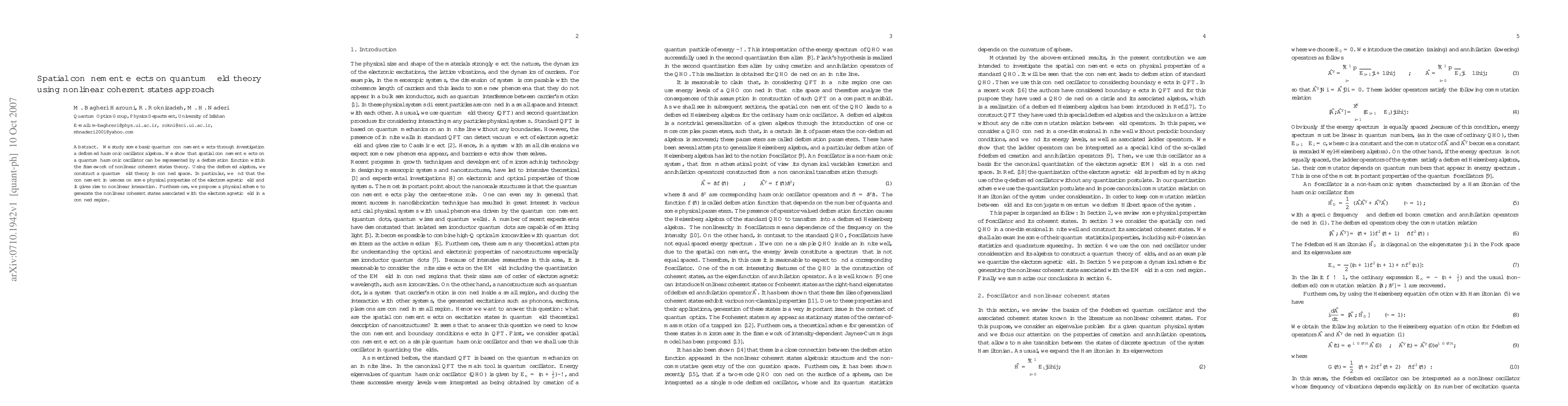 This paper investigates quantum confinement effects using nonlinear coherent states, demonstrating how spatial confinement alters a quantum harmonic oscillator via a deformation function. It constructs a quantum field theory in confined space, revealing nonlinear interactions and proposing a method to generate nonlinear coherent states for the electromagnetic field in such regions.