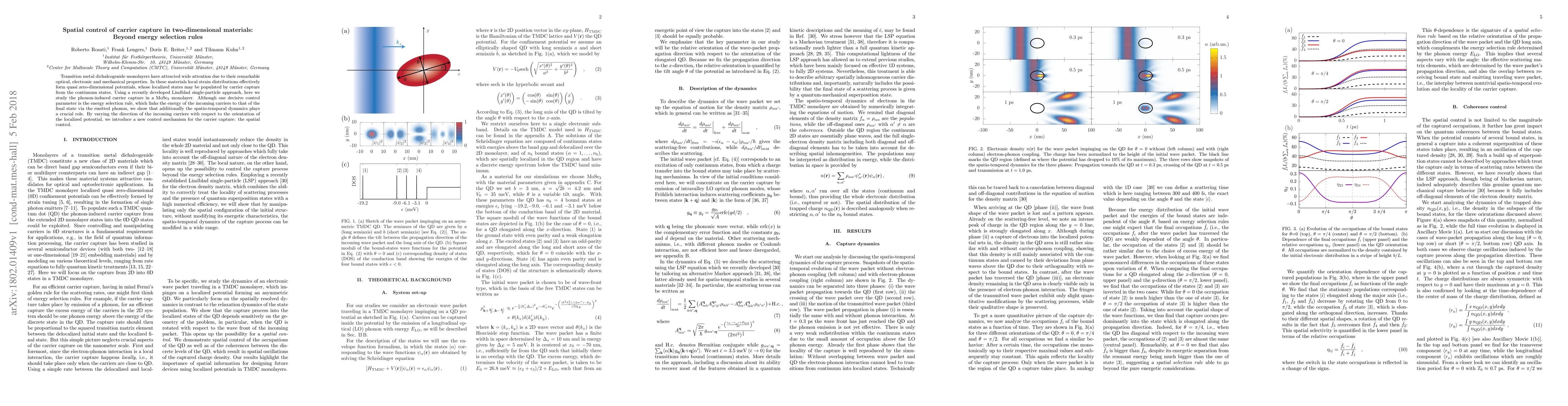 Transition metal dichalcogenide monolayers have attracted wide attention due to their remarkable optical, electronic and mechanical properties. In these materials local strain distributions effectively form quasi zero-dimensional potentials, whose localized states may be populated by carrier capture from the continuum states. Using a recently developed Lindblad single-particle approach, here we study the phonon-induced carrier capture in a MoSe$_2$ monolayer. Although one decisive control parameter is the energy selection rule, which links the energy of the incoming carriers to that of the final state via the emitted phonon, we show that additionally the spatio-temporal dynamics plays a crucial role. By varying the direction of the incoming carriers with respect to the orientation of the localized potential, we introduce a new control mechanism for the carrier capture: the spatial control.