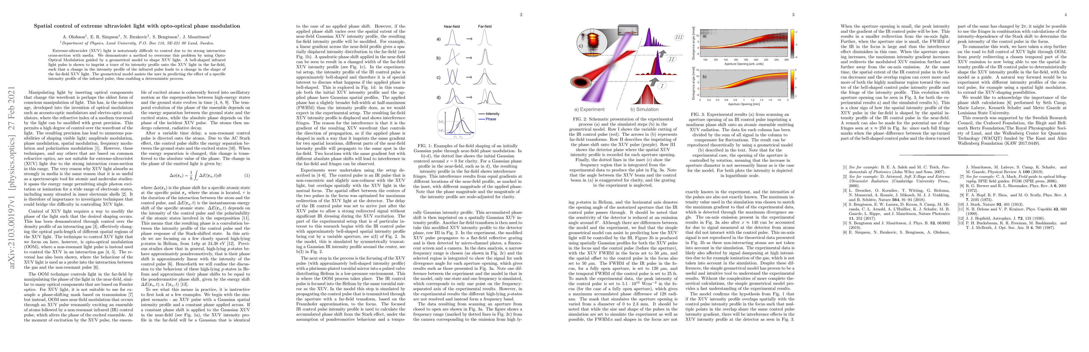 This paper presents a method for controlling extreme-ultraviolet (XUV) light using opto-optical phase modulation with an infrared light pulse. The bell-shaped infrared pulse imprints its intensity profile onto the XUV light, enabling precise shaping of the XUV beam through a geometrical model.