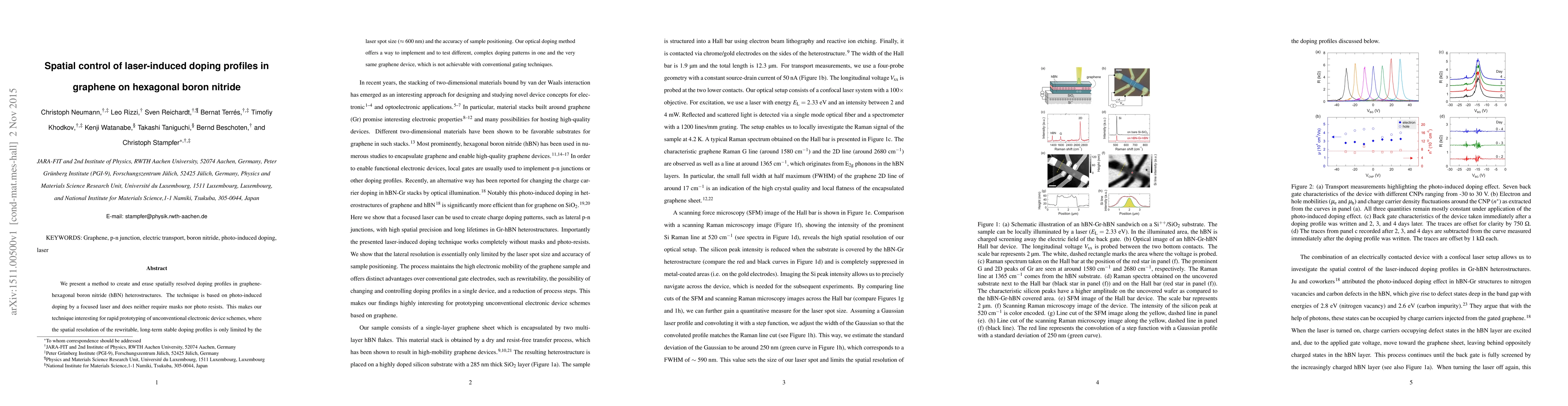 This research introduces a novel method for creating and erasing spatially resolved doping profiles in graphene on hexagonal boron nitride using focused laser-induced photo-doping, eliminating the need for masks or photo resists, thus enabling rapid prototyping of complex electronic devices. The technique offers high spatial resolution and the ability to test various doping patterns in the same graphene device.