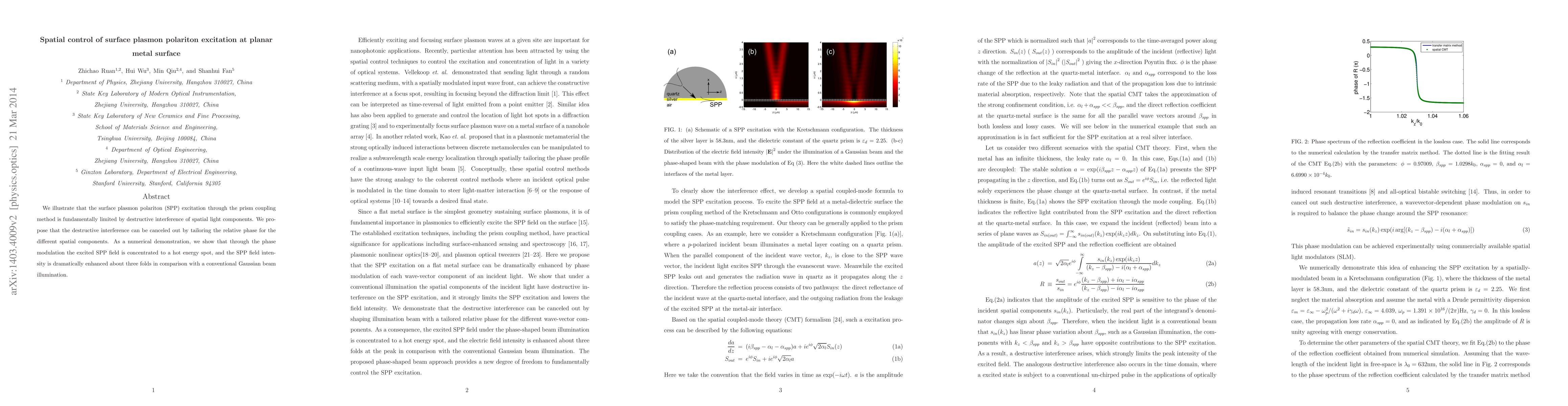 This paper demonstrates that destructive interference limits SPP excitation via prism coupling, proposing phase modulation to cancel this interference. Numerical results show that phase modulation can concentrate SPP fields into a hot spot, enhancing field intensity by approximately three times compared to conventional Gaussian beam illumination.