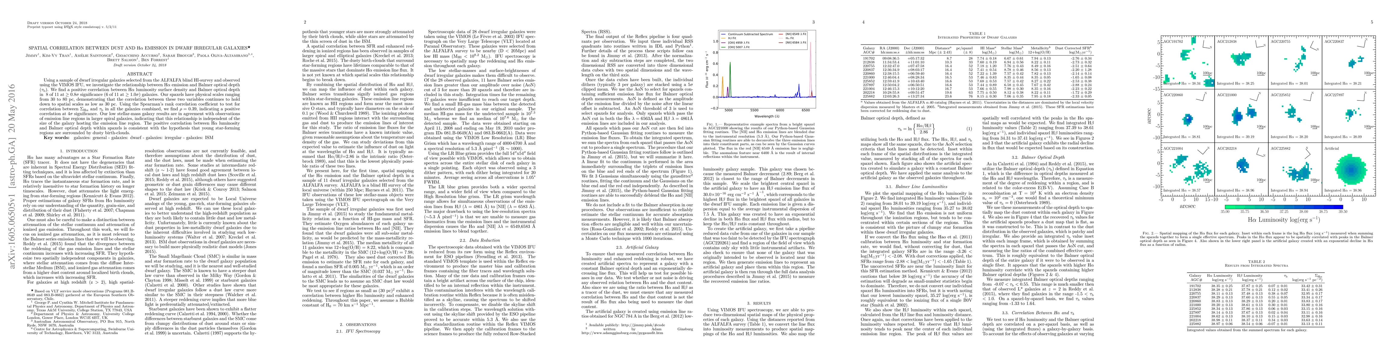 Using a sample of dwarf irregular galaxies selected from the ALFALFA blind HI-survey and observed using the VIMOS IFU, we investigate the relationship between H$\alpha$ emission and Balmer optical depth ($\tau_{\text{b}}$). We find a positive correlation between H$\alpha$ luminosity surface density and Balmer optical depth in 8 of 11 at $\geq$ 0.8$\sigma$ significance (6 of 11 at $\geq$ 1.0$\sigma$) galaxies. Our spaxels have physical scales ranging from 30 to 80 pc, demonstrating that the correlation between these two variables continues to hold down to spatial scales as low as 30 pc. Using the Spearman's rank correlation coefficient to test for correlation between $\Sigma_{\text{H}\alpha}$ and $\tau_{\text{b}}$ in all the galaxies combined, we find $\rho = 0.39$, indicating a positive correlation at 4$\sigma$ significance. Our low stellar-mass galaxy results are in agreement with observations of emission line regions in larger spiral galaxies, indicating that this relationship is independent of the size of the galaxy hosting the emission line region. The positive correlation between H$\alpha$ luminosity and Balmer optical depth within spaxels is consistent with the hypothesis that young star-forming regions are surrounded by dusty birth-clouds.