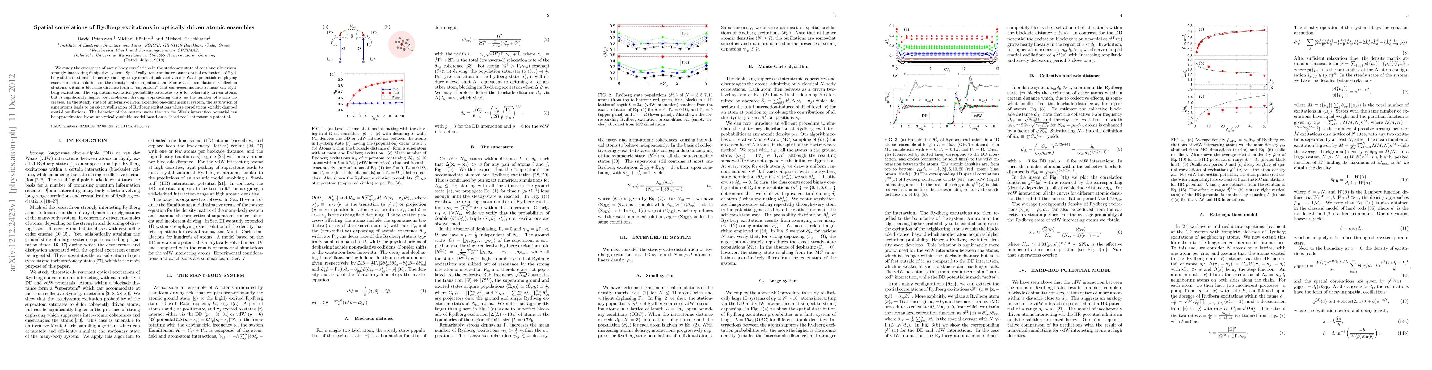 This paper investigates the emergence of many-body correlations in optically driven atomic ensembles, focusing on Rydberg excitations and their spatial correlations. It finds that superatoms, which can hold at most one Rydberg excitation, exhibit saturation in excitation probability, leading to quasi-crystallization and damped spatial oscillations in excitation correlations.
