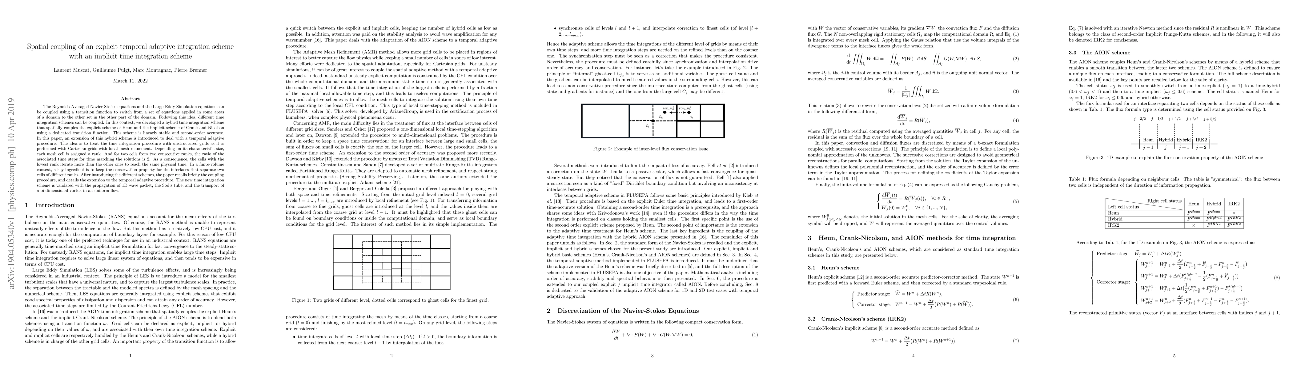 Researchers developed a hybrid time integration scheme that couples an explicit temporal adaptive integration scheme with an implicit time integration scheme, improving stability and accuracy in numerical simulations of fluid flows. The new scheme is validated with various tests, including wave packet propagation and vortex transport.