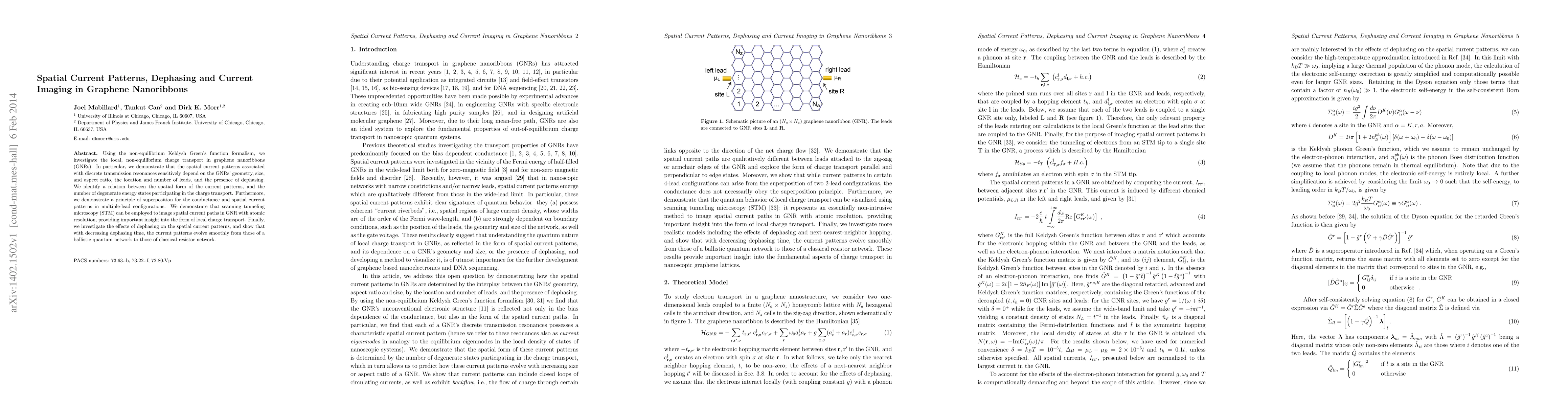 This paper uses non-equilibrium Green's function formalism to study charge transport in graphene nanoribbons, revealing how spatial current patterns depend on GNR geometry and dephasing. It also shows that scanning tunneling microscopy can image these patterns with atomic resolution, transitioning from quantum to classical behavior with reduced dephasing.