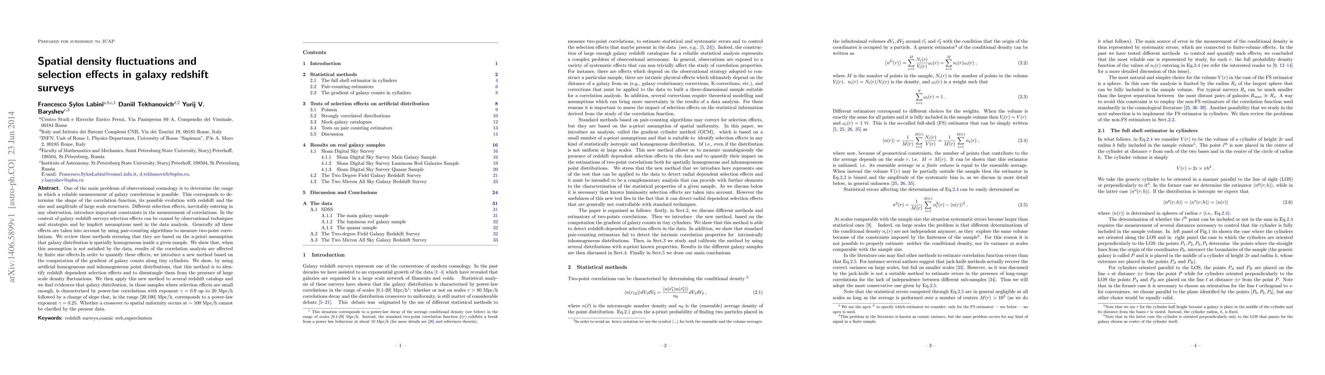 One of the main problems of observational cosmology is to determine the range in which a reliable measurement of galaxy correlations is possible. This corresponds to determine the shape of the correlation function, its possible evolution with redshift and the size and amplitude of large scale structures. Different selection effects, inevitably entering in any observation, introduce important constraints in the measurement of correlations. In the context of galaxy redshift surveys selection effects can be caused by observational techniques and strategies and by implicit assumptions used in the data analysis. Generally all these effects are taken into account by using pair-counting algorithms to measure two-point correlations. We review these methods stressing that they are based on the a-priori assumption that galaxy distribution is spatially homogeneous inside a given sample. We show that, when this assumption is not satisfied by the data, results of the correlation analysis are affected by finite size effects.In order to quantify these effects, we introduce a new method based on the computation of the gradient of galaxy counts along tiny cylinders. We show, by using artificial homogeneous and inhomogeneous point distributions, that this method is to identify redshift dependent selection effects and to disentangle them from the presence of large scale density fluctuations. We then apply this new method to several redshift catalogs and we find evidences that galaxy distribution, in those samples where selection effects are small enough, is characterized by power-law correlations with exponent $\gamma=0.9$ up to $20$ Mpc/h followed by a change of slope that, in the range [20,100] Mpc/h, corresponds to a power-law exponent $\gamma=0.25$. Whether a crossover to spatial unformity occurs at $\sim 100$ Mpc/h cannot be clarified by the present data.