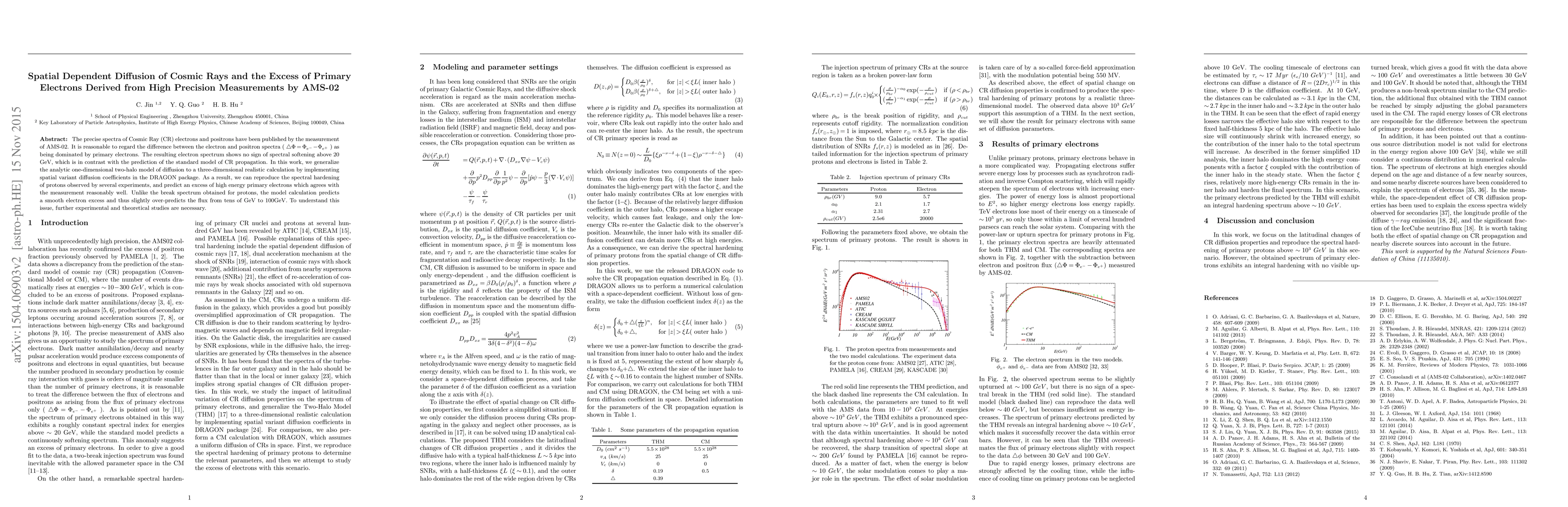 This paper uses AMS-02 measurements to analyze the spatial dependent diffusion of cosmic rays, particularly focusing on the excess of high-energy primary electrons. The study generalizes a two-halo model to a three-dimensional approach, predicting a smooth electron excess that slightly overfits observed fluxes, suggesting the need for further research.
