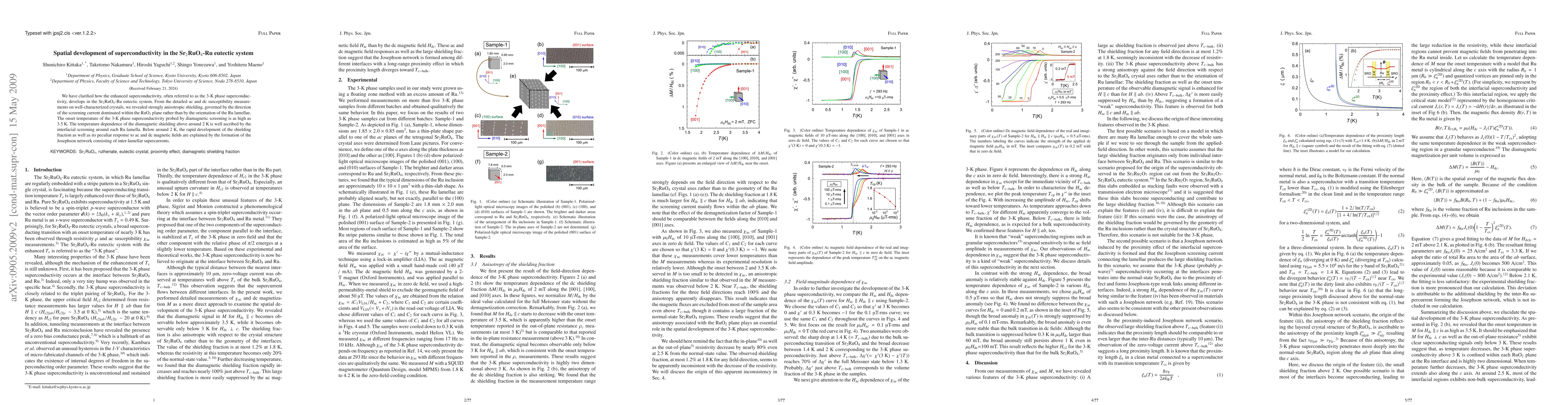 This study elucidates the spatial development of enhanced superconductivity in the Sr2RuO4-Ru eutectic system, revealing anisotropic shielding dominated by the RuO2 plane. The 3-K phase superconductivity onsets at 3.5 K, with interfacial screening explaining behavior above 2 K, while a Josephson network forms below this temperature.