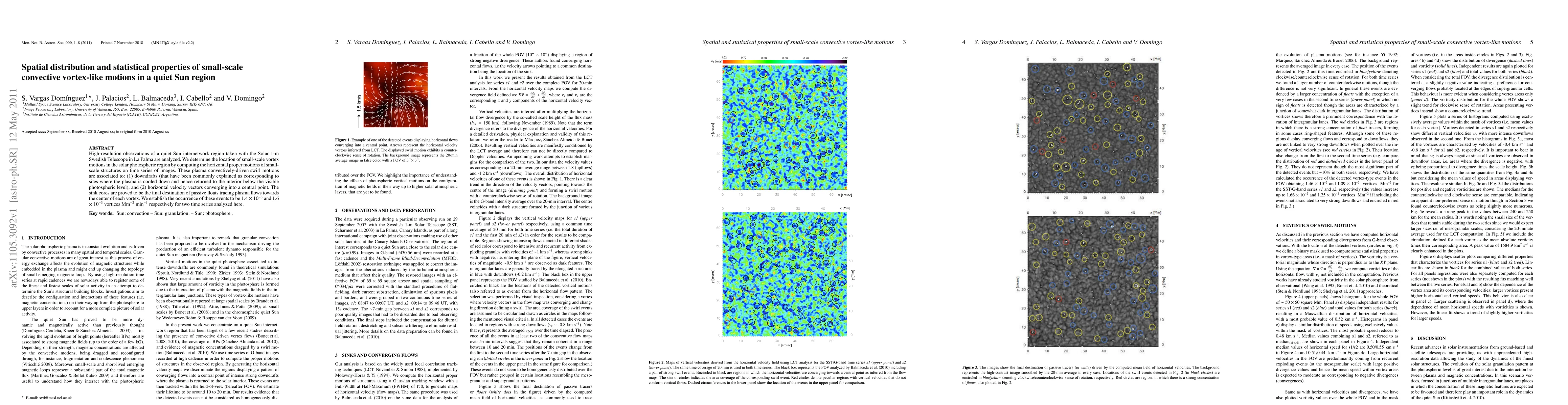 This study analyzes high-resolution observations of quiet Sun regions to identify small-scale vortex motions, finding them to be associated with downdrafts and converging horizontal velocity vectors. The occurrence rate of these vortex-like motions is determined to be 1.4 x 10^(-3) and 1.6 x 10^(-3) vortices per Mm^(-2) per minute.