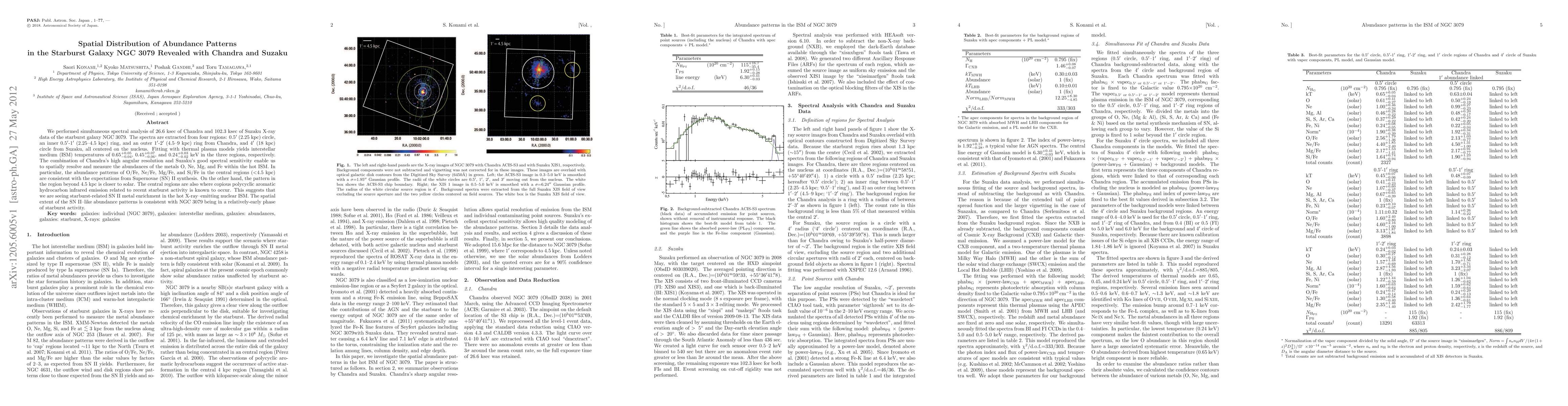 We performed simultaneous spectral analysis of 26.6 ksec of Chandra and 102.3 ksec of Suzaku X-ray data of the starburst galaxy NGC 3079. The spectra are extracted from four regions: 0.5' (2.25 kpc) circle, an inner 0.5'-1' (2.25--4.5 kpc) ring, and an outer 1'-2' (4.5--9 kpc) ring from Chandra, and 4' (18 kpc) circle from Suzaku, all centered on the nucleus. Fitting with thermal plasma models yields interstellar medium (ISM) temperatures of 0.65+0.05-0.04, 0.45+0.07-0.06, and 0.24+0.03-0.02 keV in the three regions, respectively. The combination of Chandra's high angular resolution and Suzaku's good spectral sensitivity enable us to spatially resolve and measure the abundances of the metals O, Ne, Mg, and Fe within the hot ISM. In particular, the abundance patterns of O/Fe, Ne/Fe, Mg/Fe, and Si/Fe in the central regions (<4.5 kpc) are consistent with the expectations from Supernovae (SN) II synthesis. On the other hand, the pattern in the region beyond 4.5 kpc is closer to solar. The central regions are also where copious polycyclic aromatic hydrocarbon infrared emission related to recent starburst activity is known to occur. This suggests that we are seeing starburst-related SN II metal enrichment in the hot X-ray--emitting nuclear ISM. The spatial extent of the SN II--like abundance patterns is consistent with NGC 3079 being in a relatively-early phase of starburst activity.