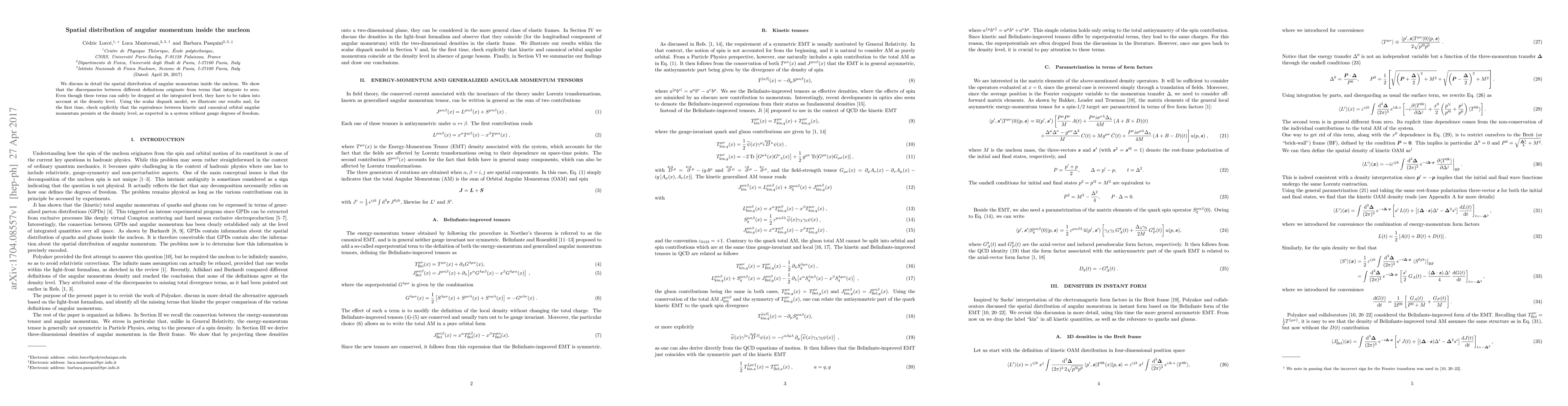 We discuss in detail the spatial distribution of angular momentum inside the nucleon. We show that the discrepancies between different definitions originate from terms that integrate to zero. Even though these terms can safely be dropped at the integrated level, they have to be taken into account at the density level. Using the scalar diquark model, we illustrate our results and, for the first time, check explicitly that the equivalence between kinetic and canonical orbital angular momentum persists at the density level, as expected in a system without gauge degrees of freedom.