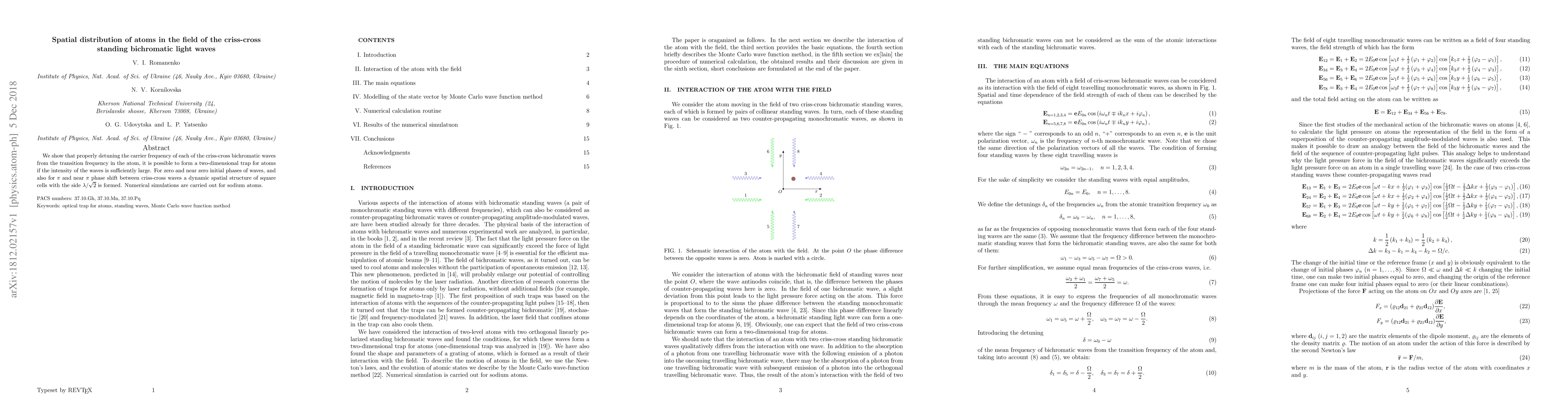 We show that properly detuning the carrier frequency of each of the criss-cross bichromatic waves from the transition frequency of the atom, it is possible to form a two-dimensional trap for atoms if the intensity of the waves is sufficiently large. For zero and near zero initial phases of waves, and also for $\pi$ and near $\pi$ phase shift between criss-cross waves a dynamic spatial structure of square cells with the side $\lambda /\sqrt{2}$ is formed. Numerical simulations are carried out for sodium atoms.